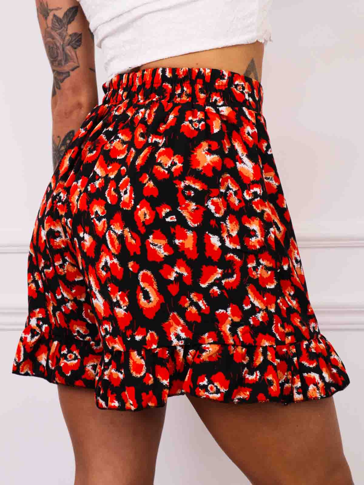 SPÓDNICO-SPODENKI W PANTERKĘ Z FALBANAMI I WIĄZANIEM W PASIE- CZERWONE