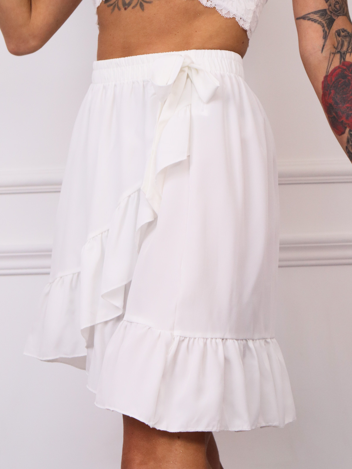 SPÓDNICA Z FALBANAMI WIĄZANA W PASIE- BIAŁA