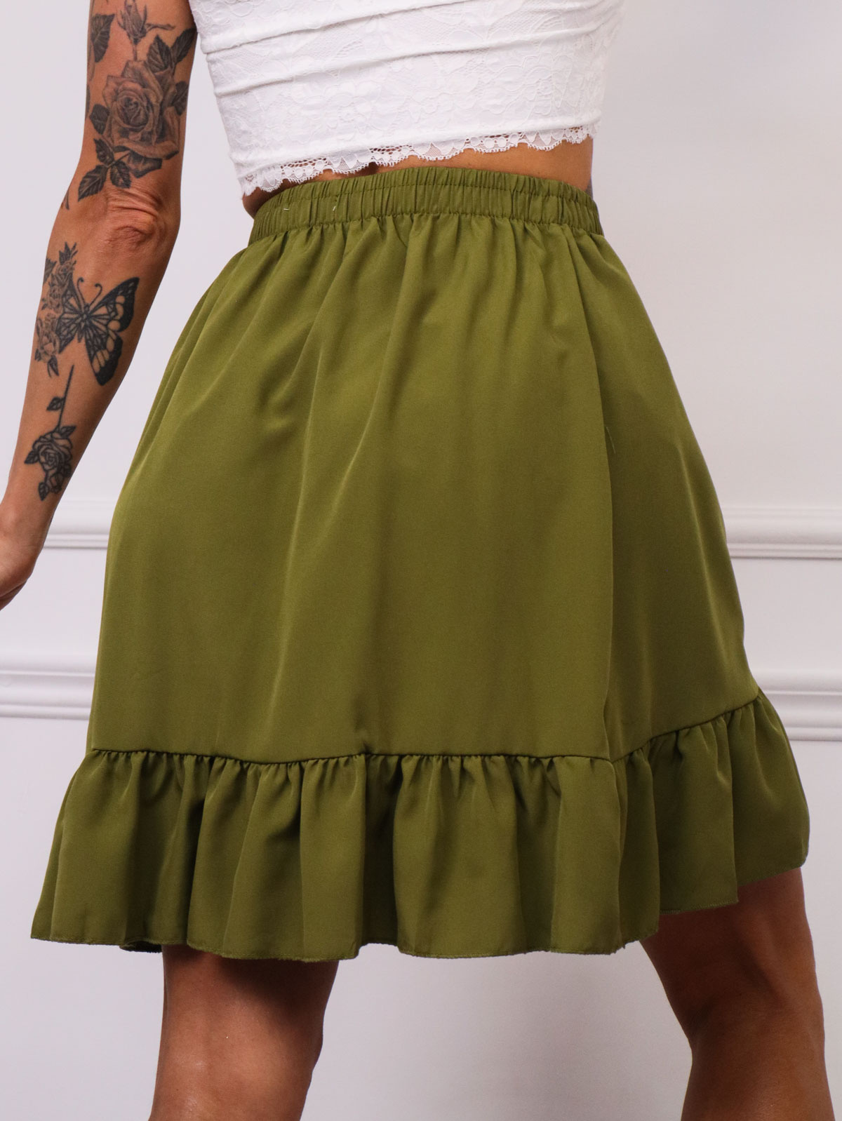 SPÓDNICA Z FALBANAMI WIĄZANA W PASIE- ZIELONA