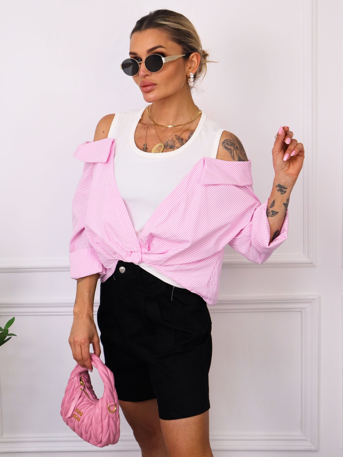 TOP Z KOSZULĄ W PASKI OVERSIZE- RÓŻOWY