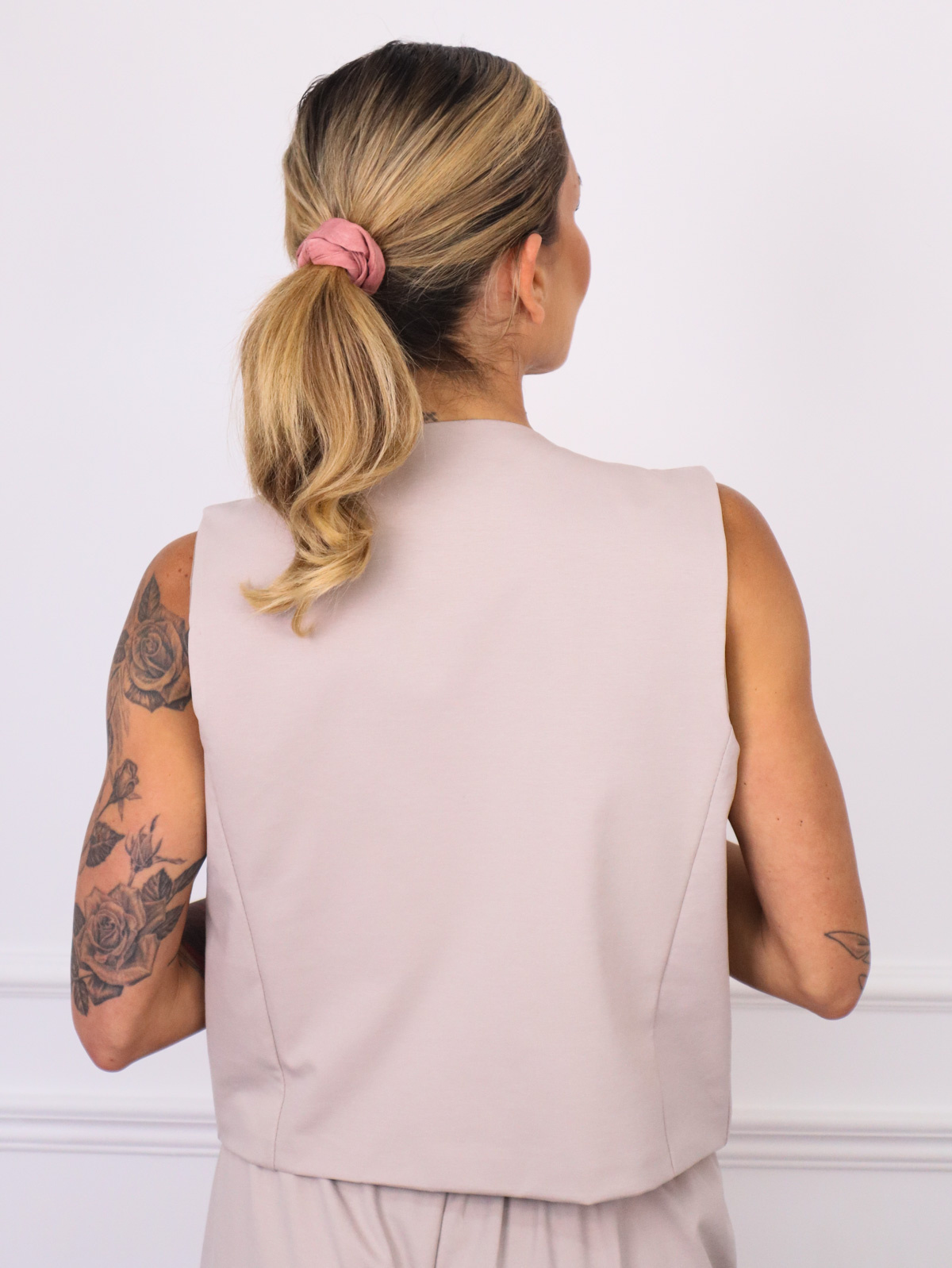 KOMPLET KAMIZELKA+ SPODNIE Z SZEROKIMI NOGAWKAMI I PASKIEM- BEŻOWY