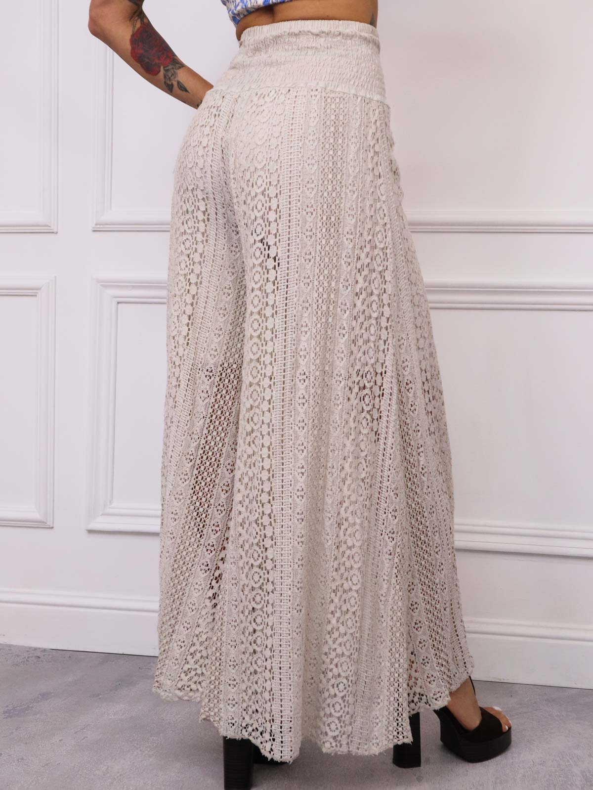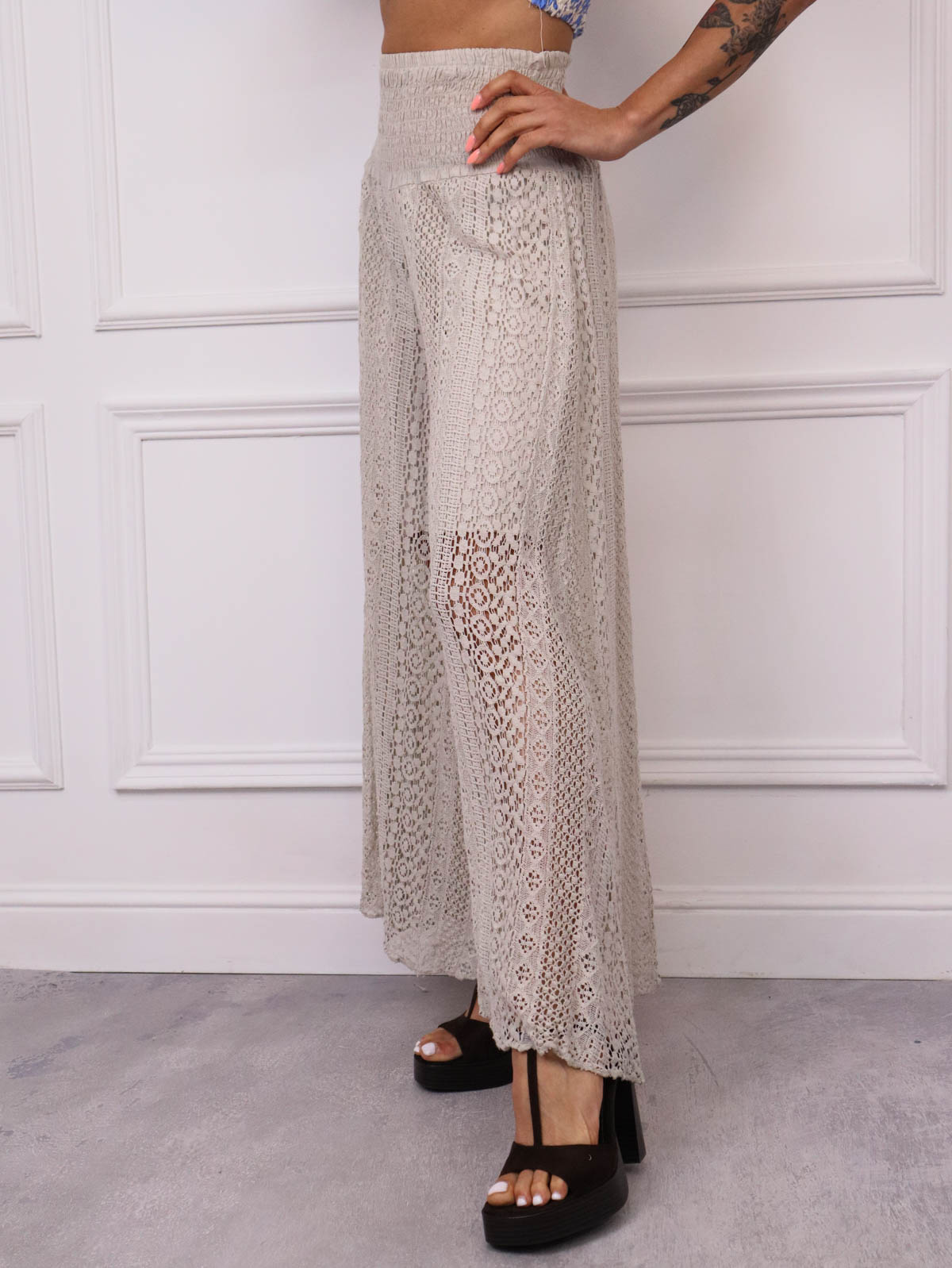 SPODNIE Z KORONKOWYMI NOGAWKAMI I SZEROKIM PASEM- BEŻOWE
