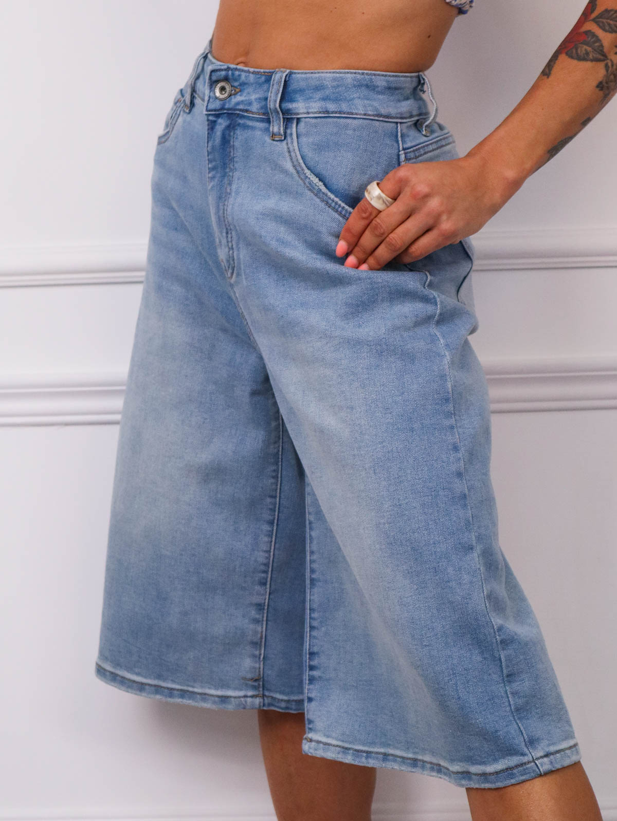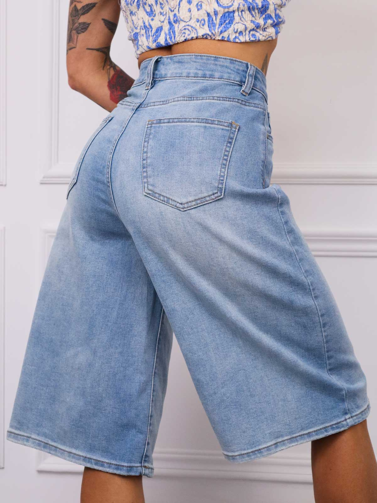 SZORTY JEANSOWE BERMUDY Z WYSOKIM STANEM