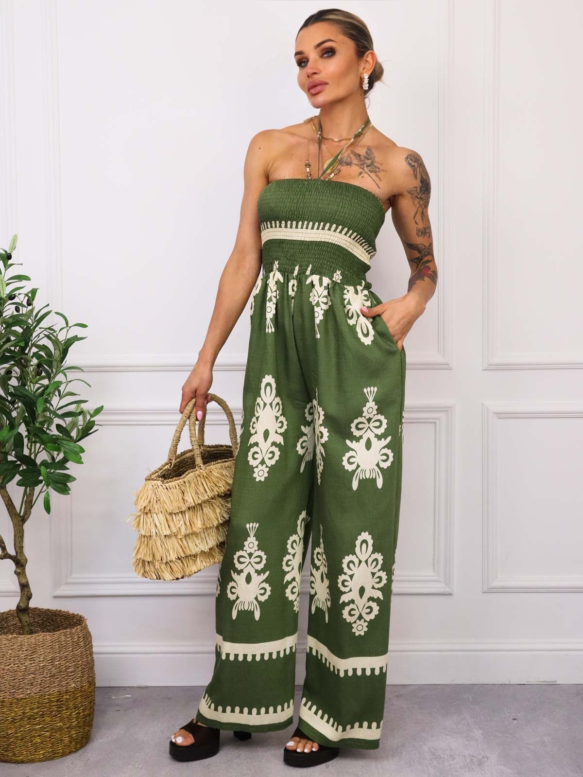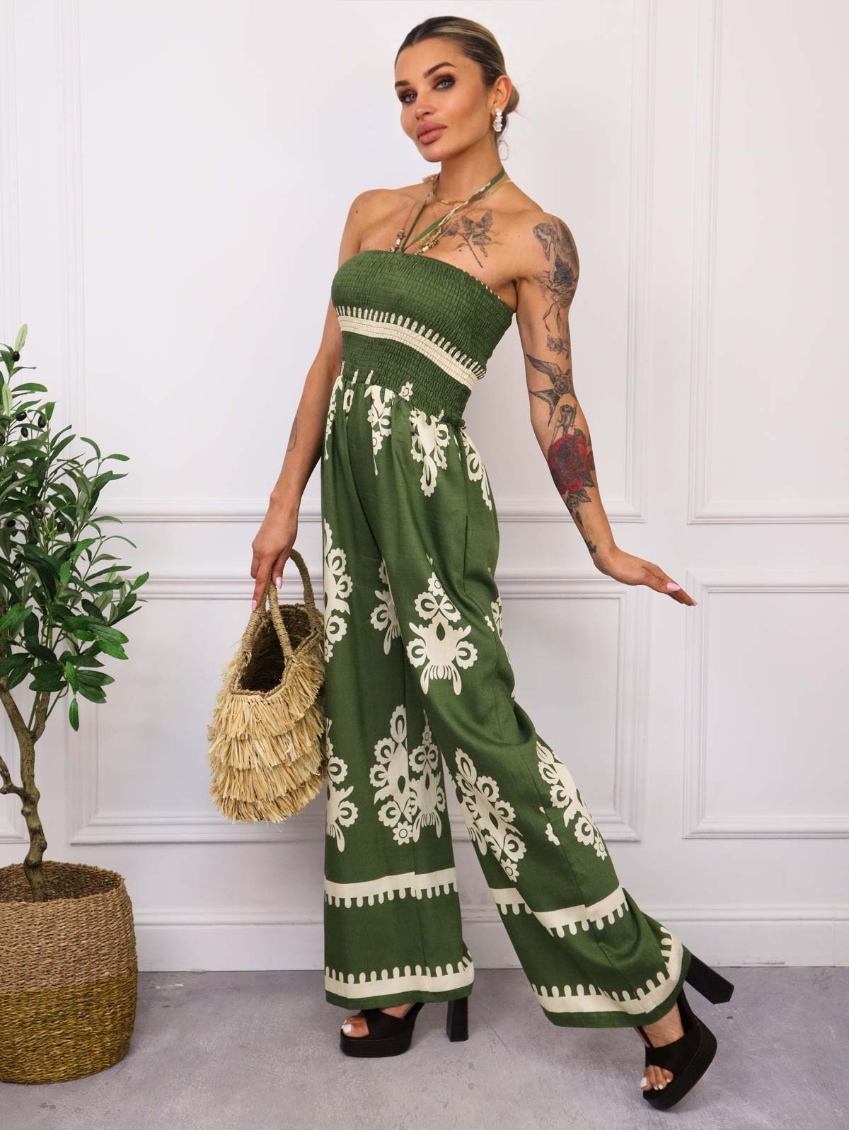 KOMBINEZON WZORZYSTY BEZ RAMIĄCZEK- ZIELONY