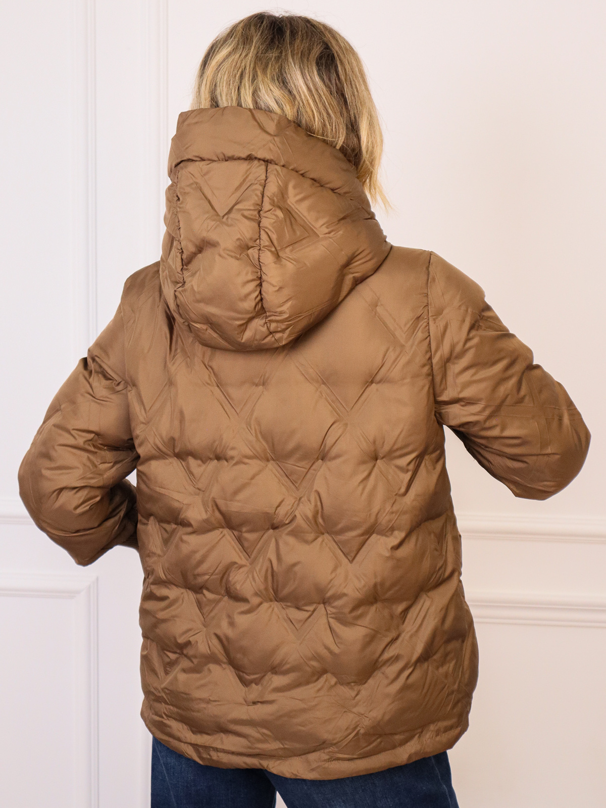 KURTKA PIKOWANA Z MATERIAŁOWYM ŚCIAGACZEM NA RĘKAWIE- BRĄZOWA