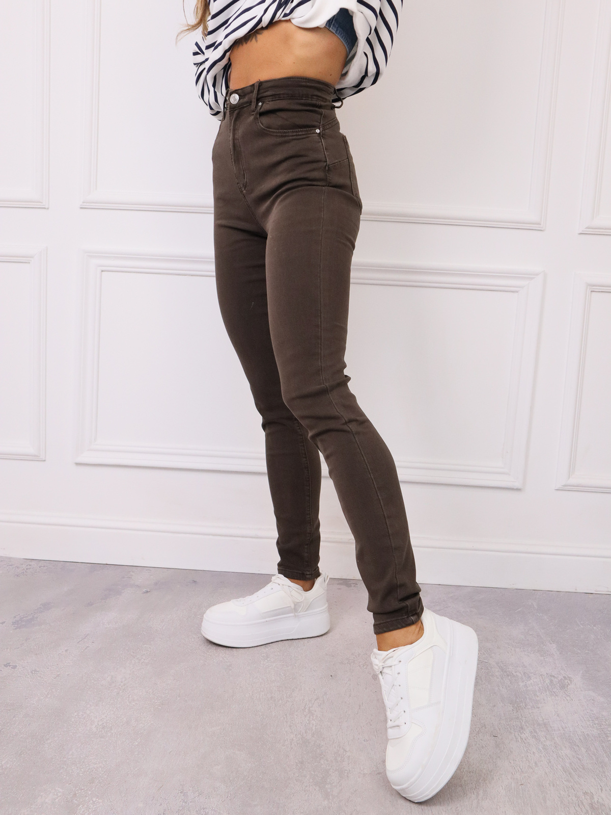 DOPASOWANE SPODNIE Z WYSOKIM STANEM PUSH UP- CIEMNOBRĄZOWE