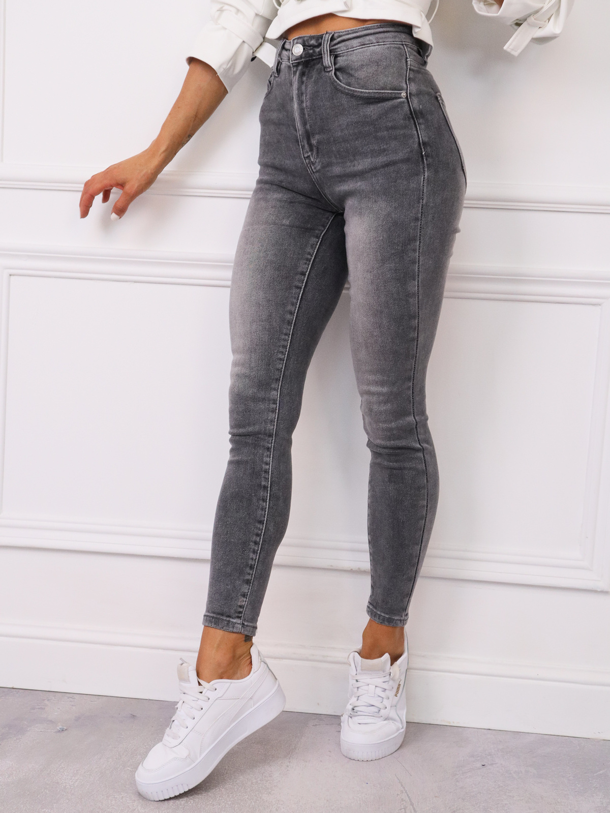 SPODNIE JEANSOWE Z WYSOKIM STANEM - SZARE