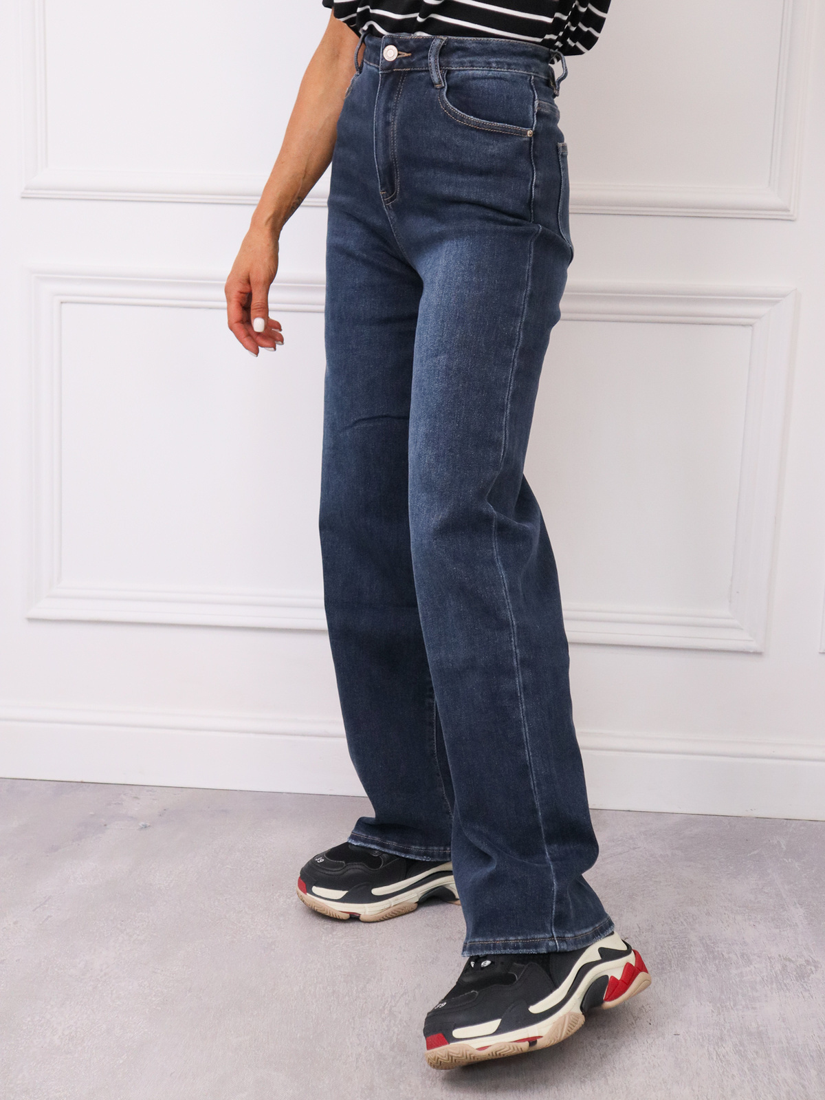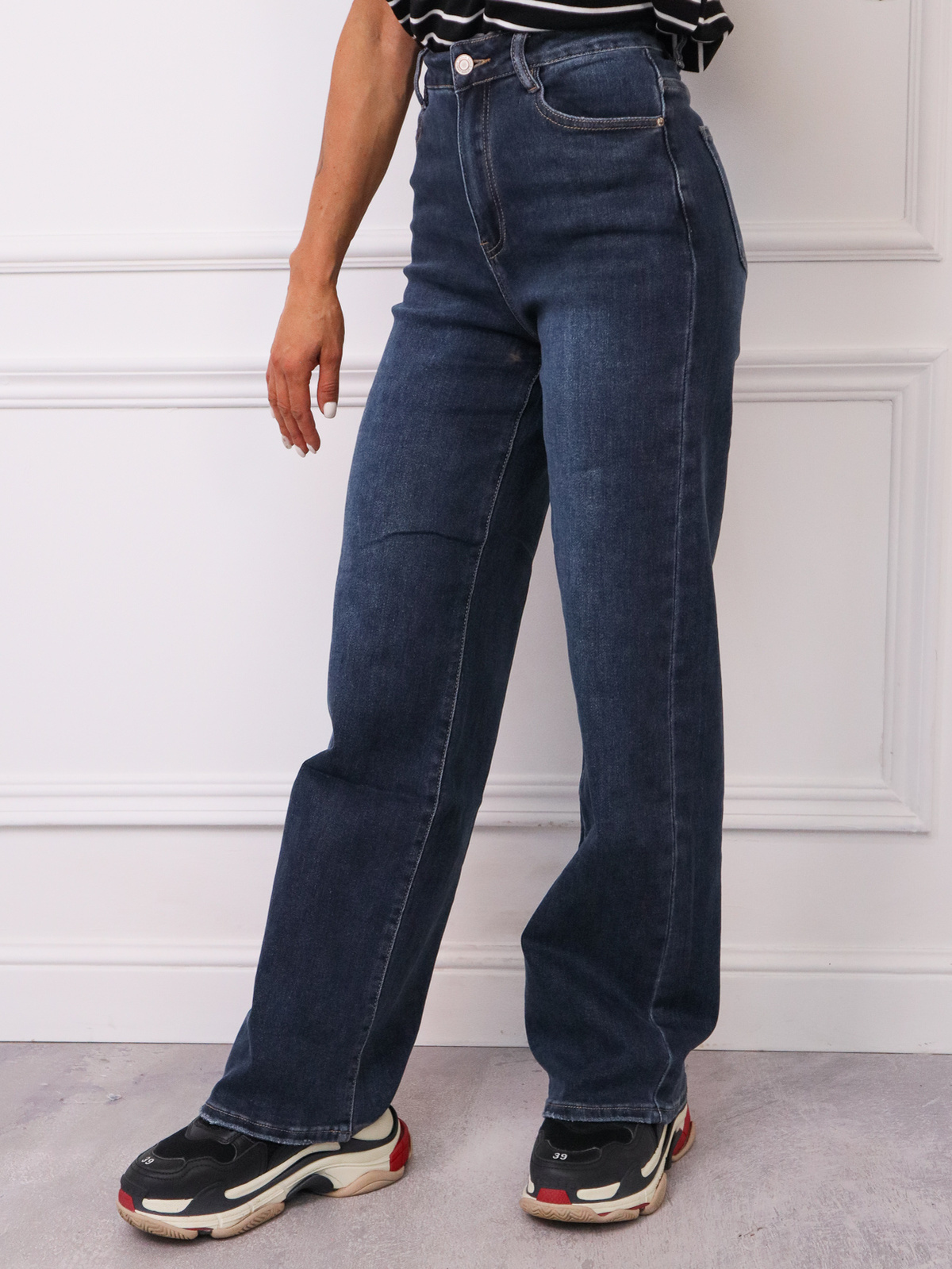 SPODNIE JEANSOWE Z SZEROKĄ NOGAWKĄ I WYSOKIM STANEM- GRANATOWE