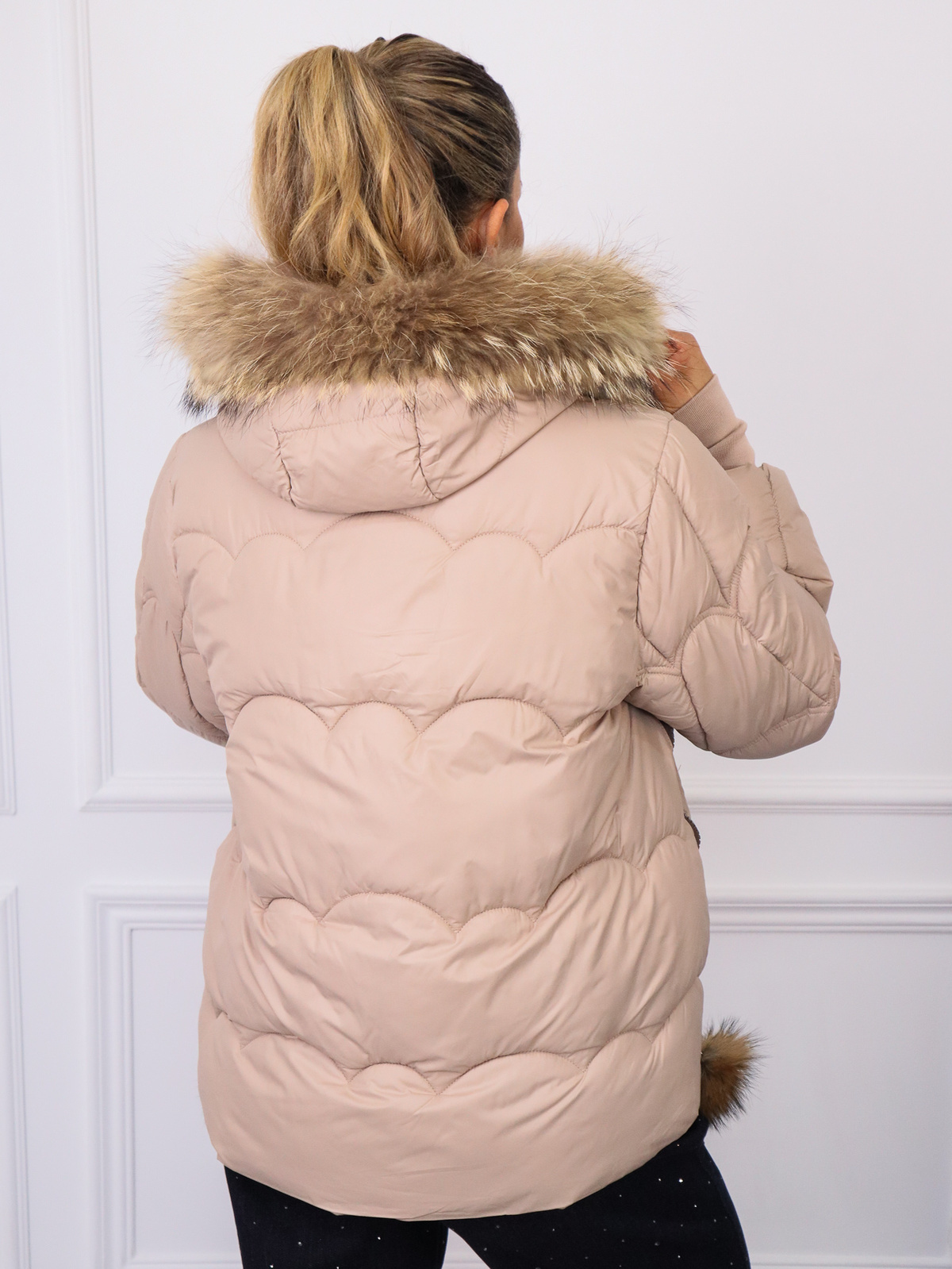 KURTKA PIKOWANA Z ZAMKAMI PO BOKACH I FUTERKIEM- BEŻOWA