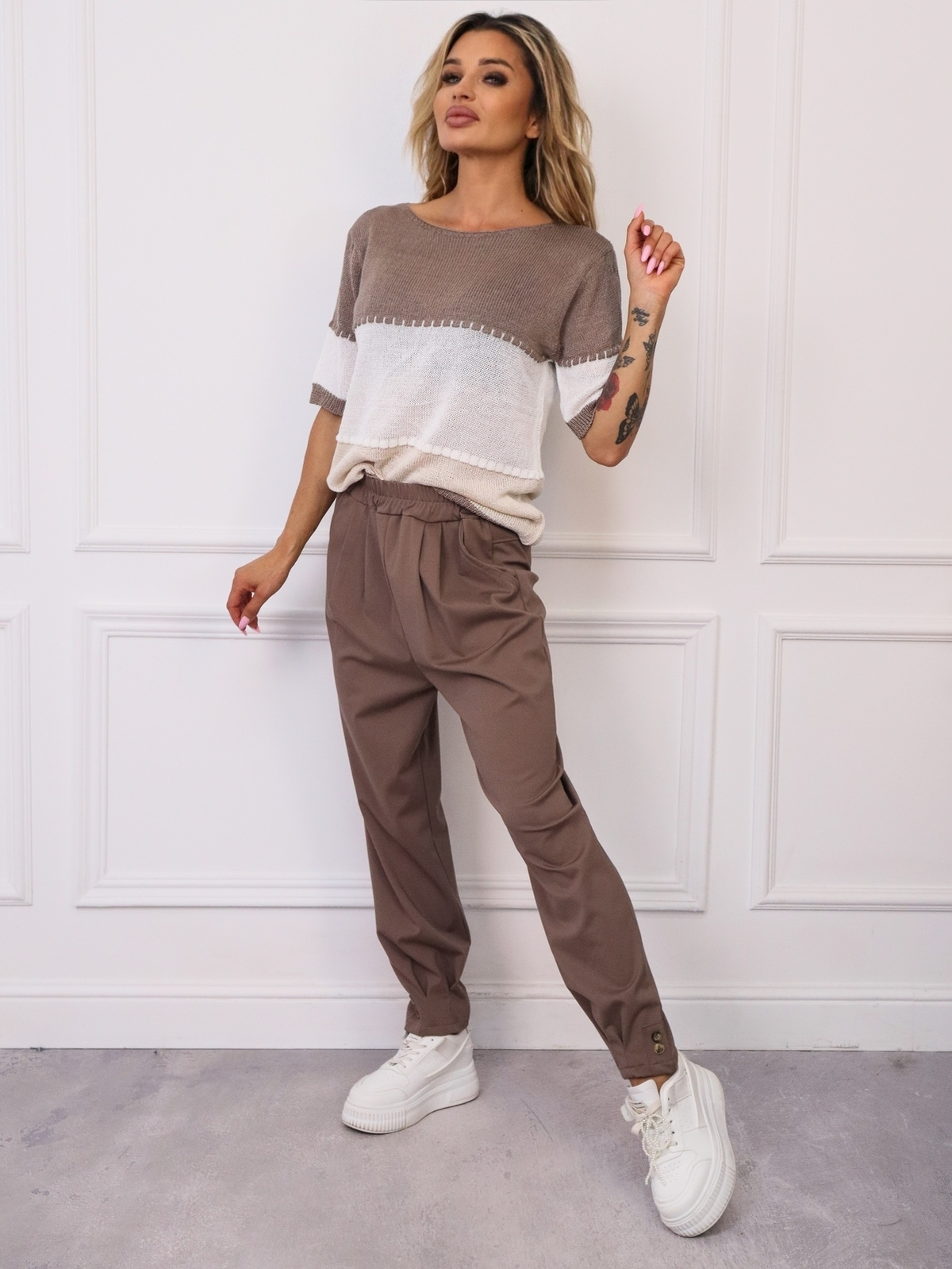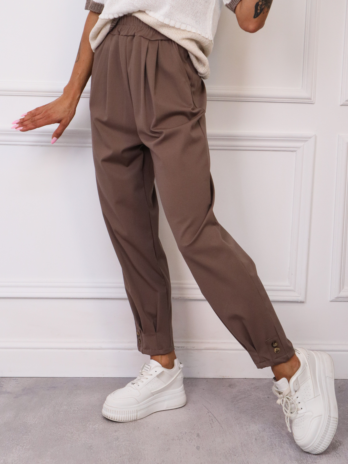 SPODNIE MATERIAŁOWE Z OZDOBNYMI GUZIKAMI NA DOLE NOGAWEK- FANGO