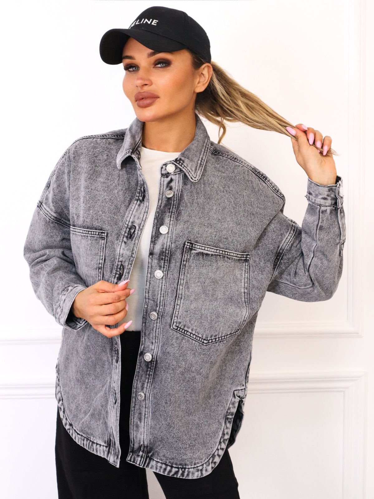 KOSZULA JEANSOWA Z KIESZENIAMI ZAPINANA NA GUZIKI- SZARA