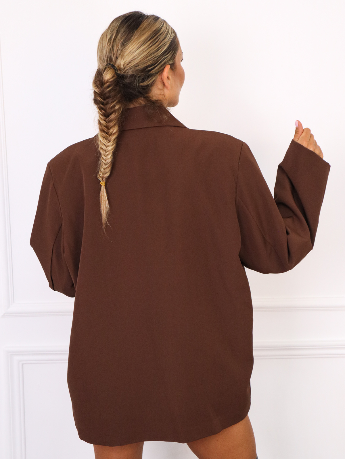 MARYNARKA OVERSIZE ZAPINANA NA GUZIKI- CIEMNOBRĄZOWA