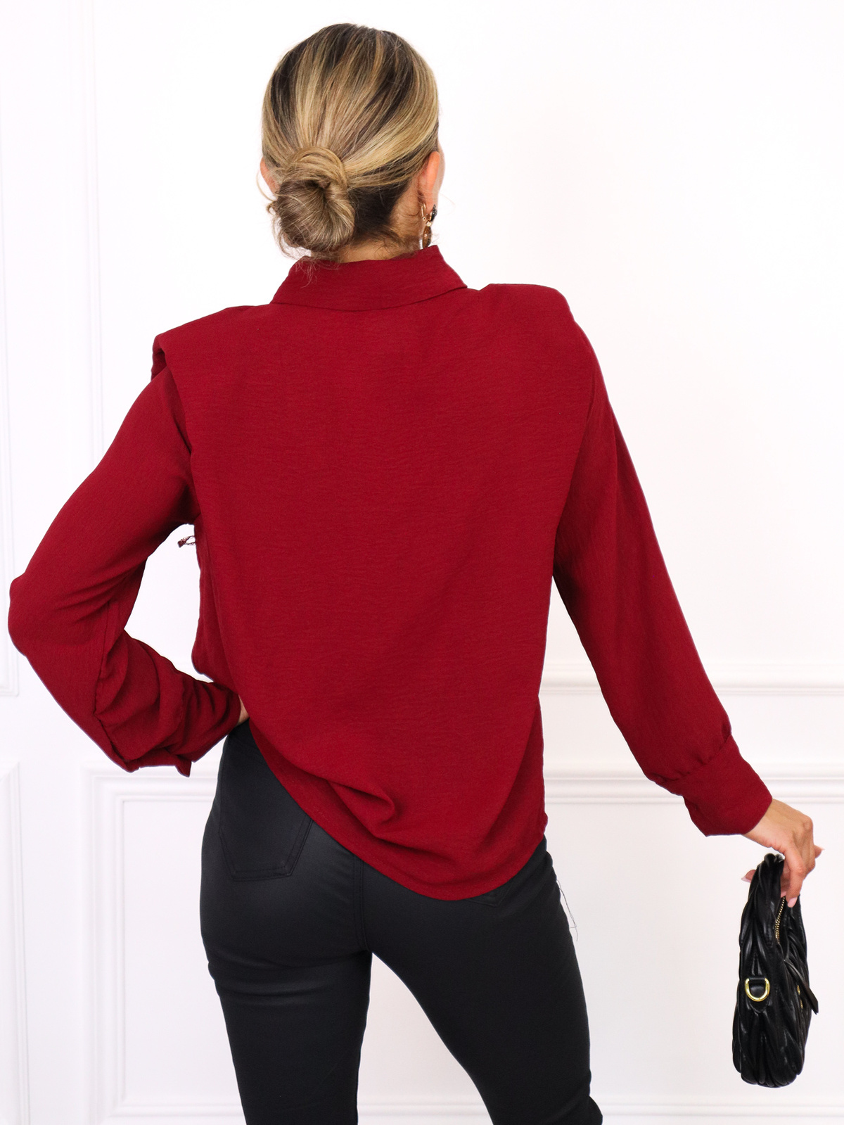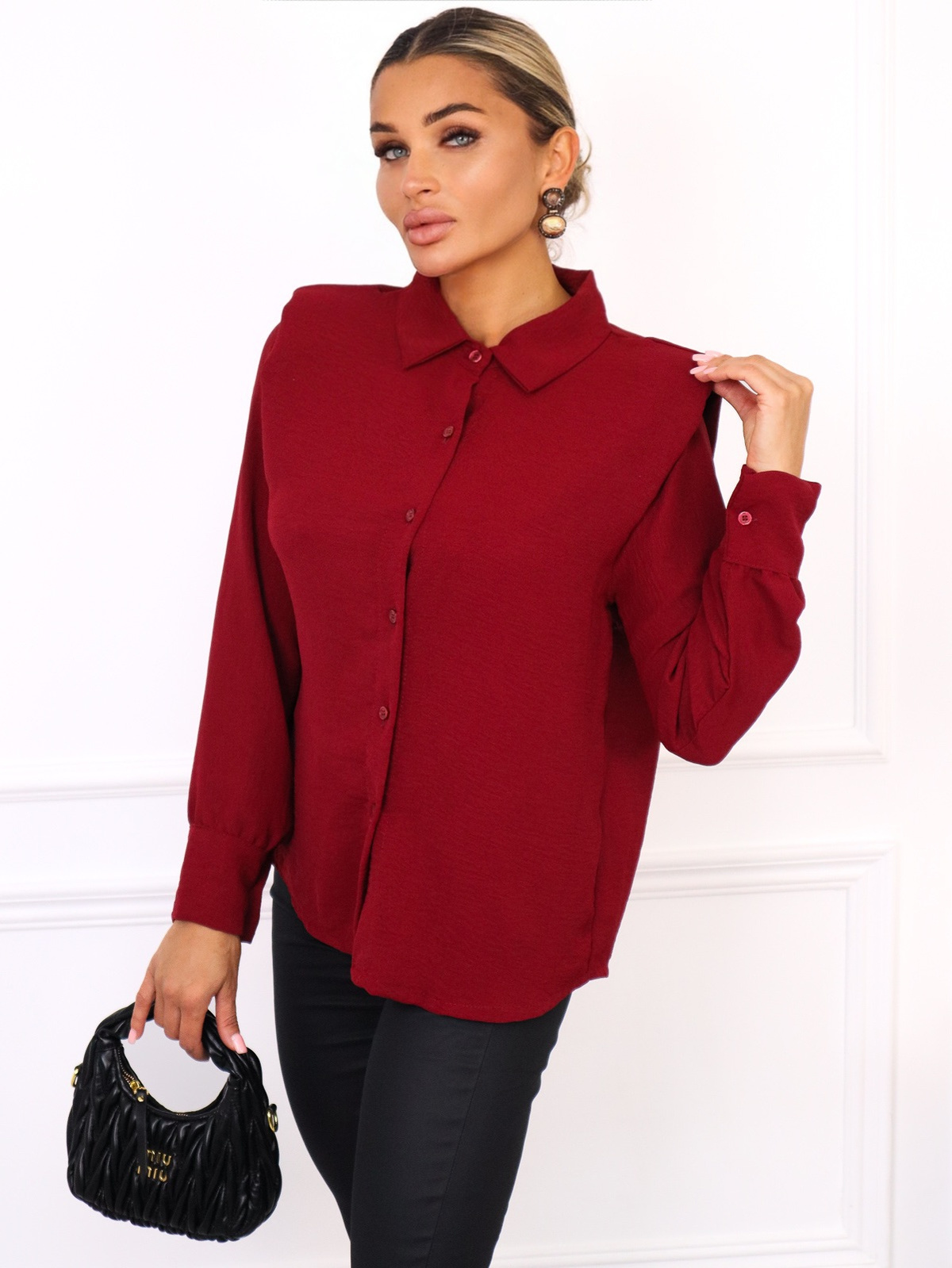 KOSZULA Z PODUSZKAMI NA RAMIONACH- BORDOWA