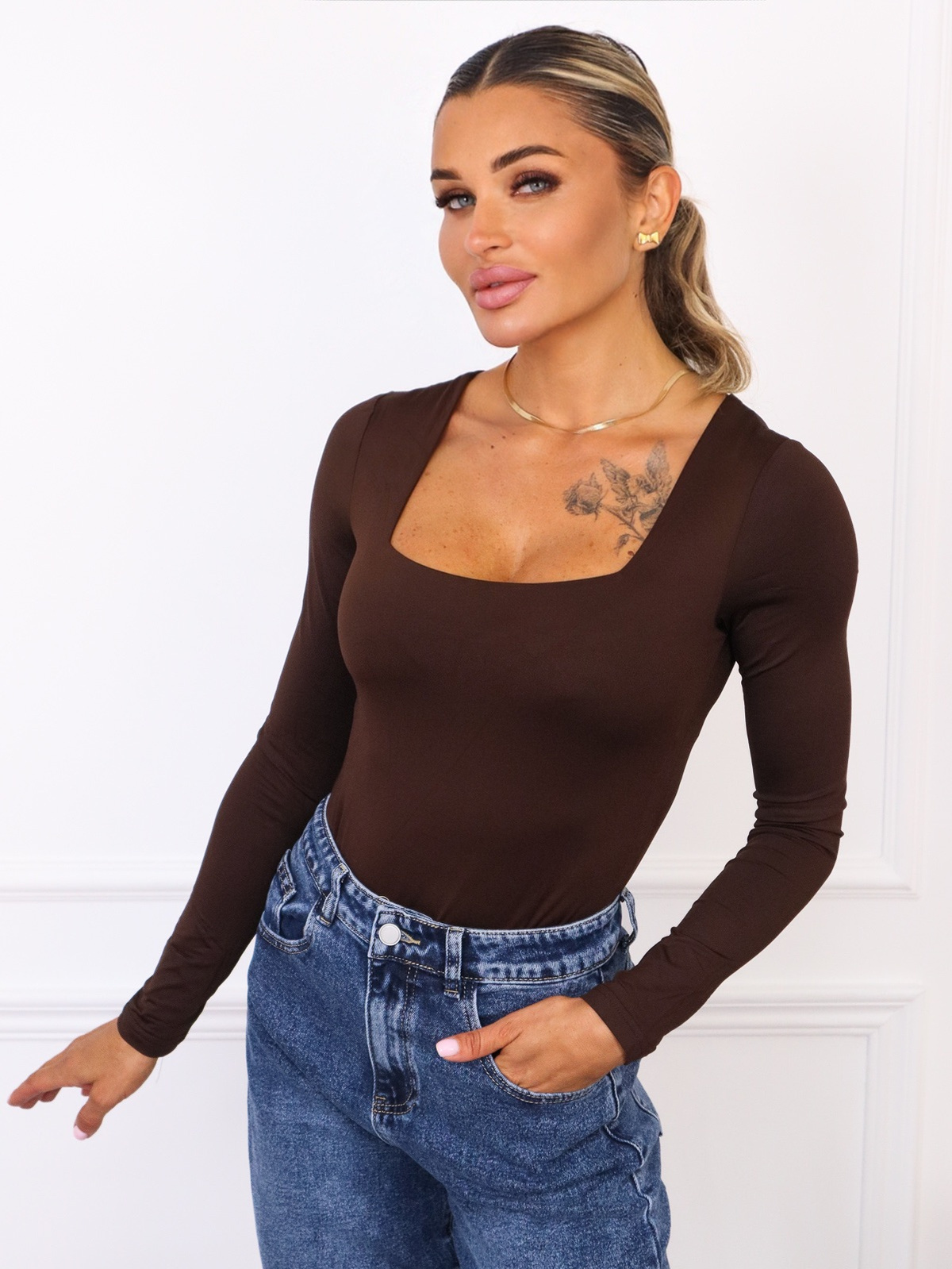 BODY Z KWADRATOWYM DEKOLTEM- CZEKOLADOWE