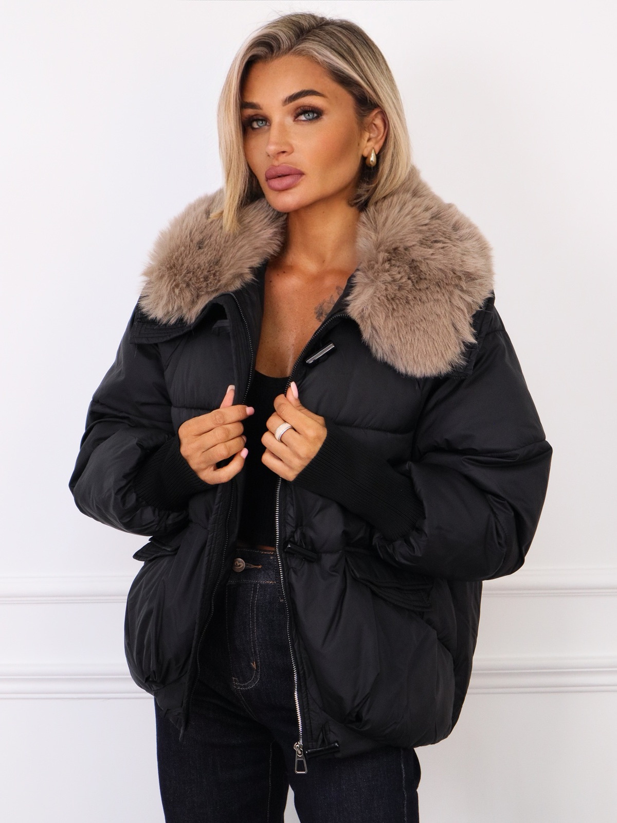 KURTKA ZIMOWA Z ODPINANYM FUTERKIEM- CZARNA