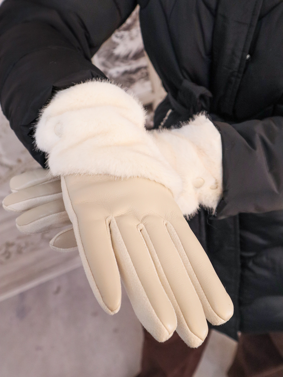 RĘKAWICZKI OCIEPLANE Z EKOSKÓRY I ZAMSZU Z FUTERKIEM- BEŻOWE