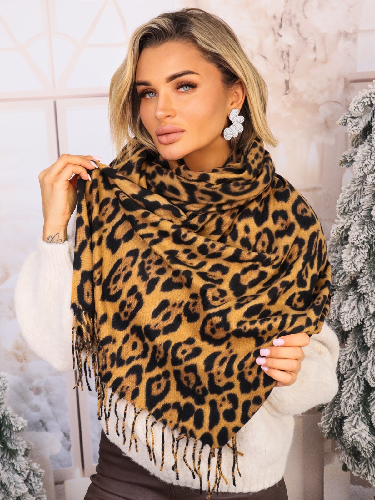 CHUSTA DZIANINOWA W PANTERKĘ- BRĄZOWA