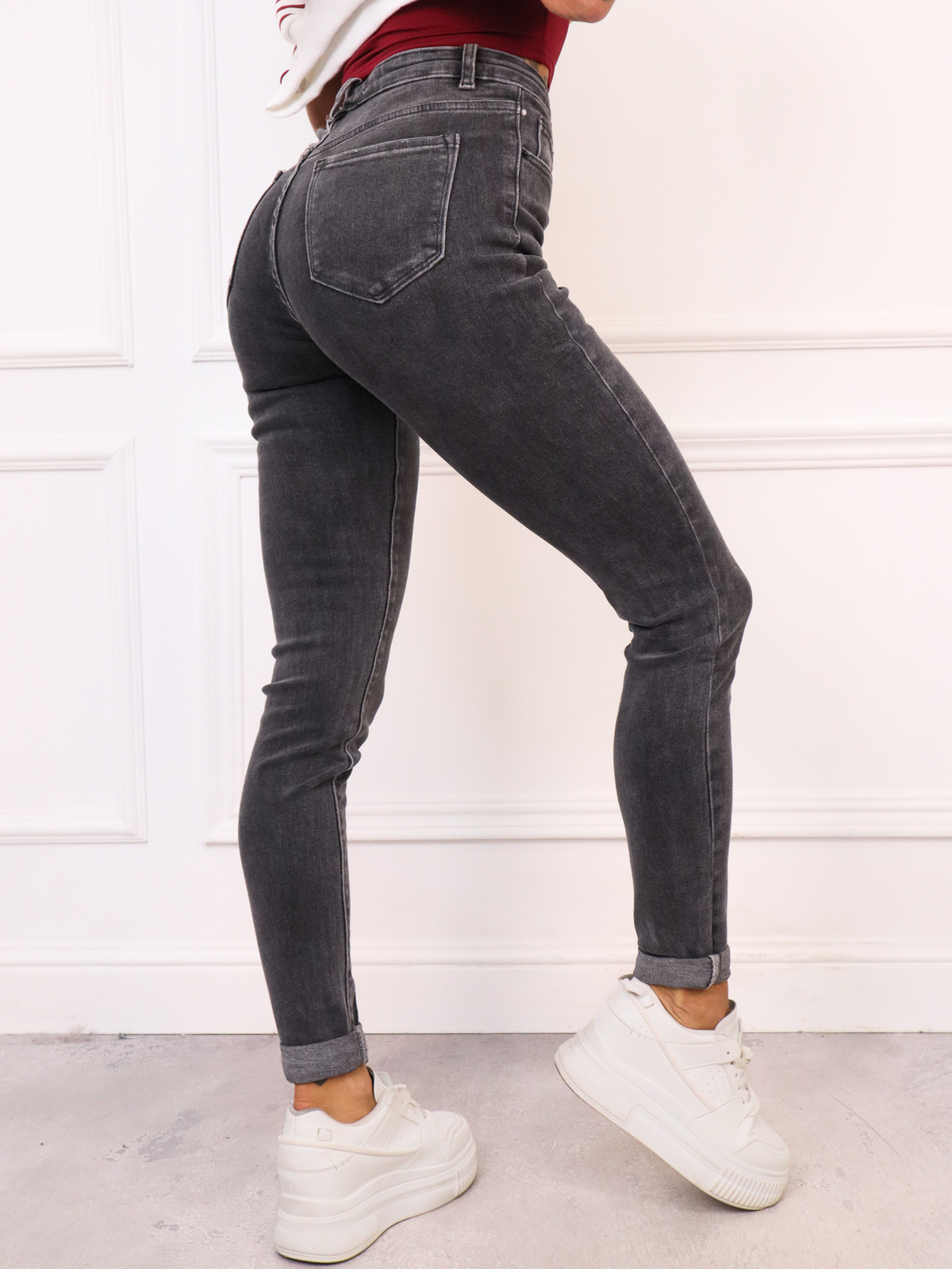 SPODNIE JEANSOWE SKINNY DLA WYSOKICH- SZARE