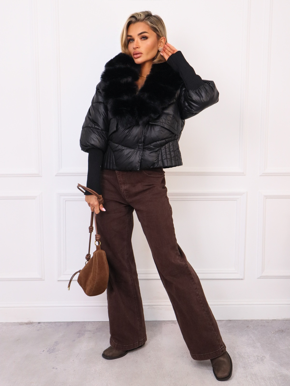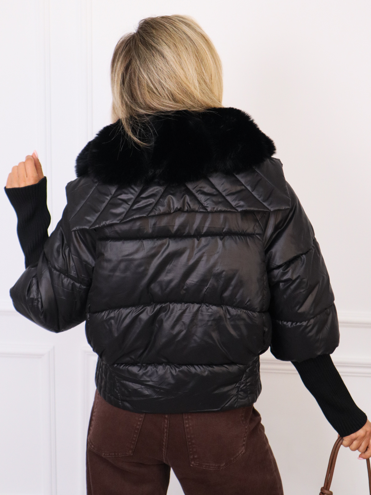 KURTKA KRÓTKA Z ODPINANYM FUTERKIEM- CZARNA