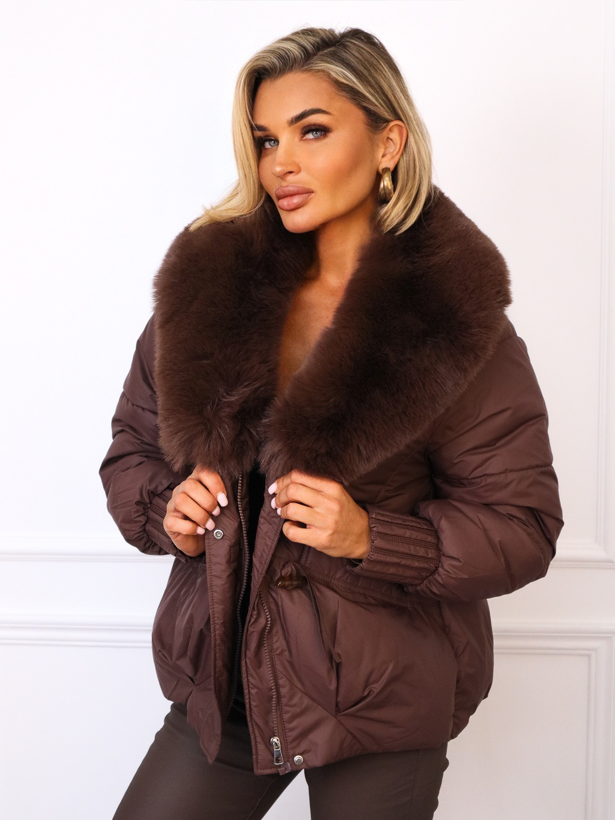 KURTKA ZIMOWA ZAPINANA NA ZAMEK I GUZIKI Z FUTERKIEM- CZEKOLADOWA