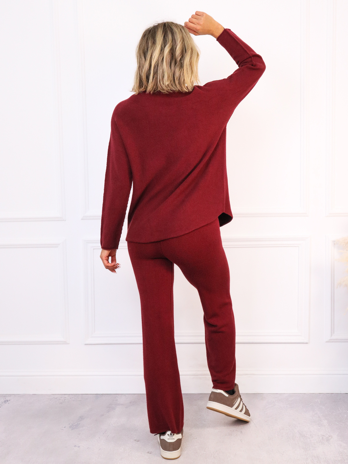 DZIANINOWY KOMPLET SWETER Z PÓŁGOLFEM+ SZEROKIE SPODNIE- BORDOWY