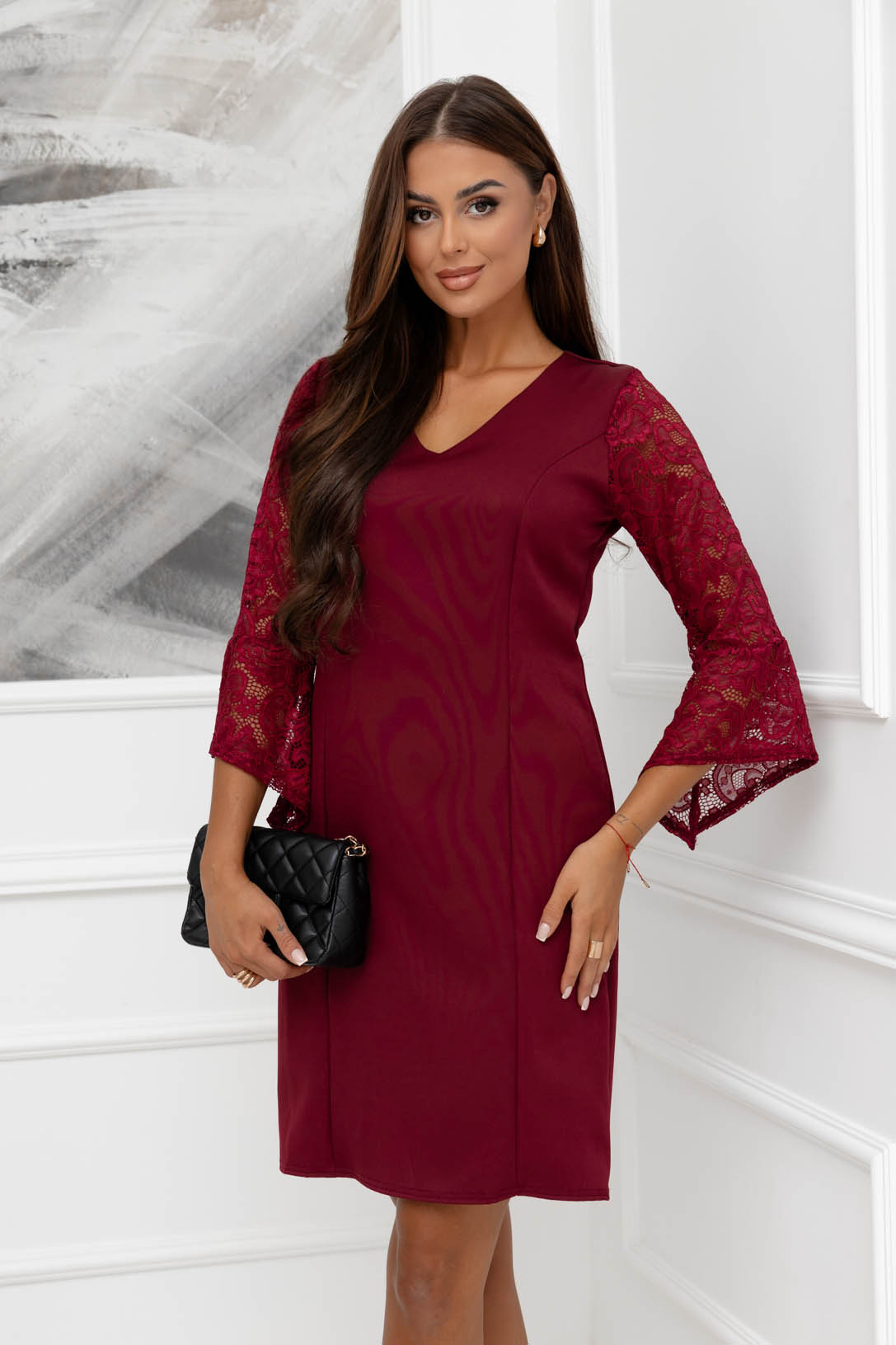 SUKIENKA MINI Z KORONKOWYMI RĘKAWAMI- BORDOWA