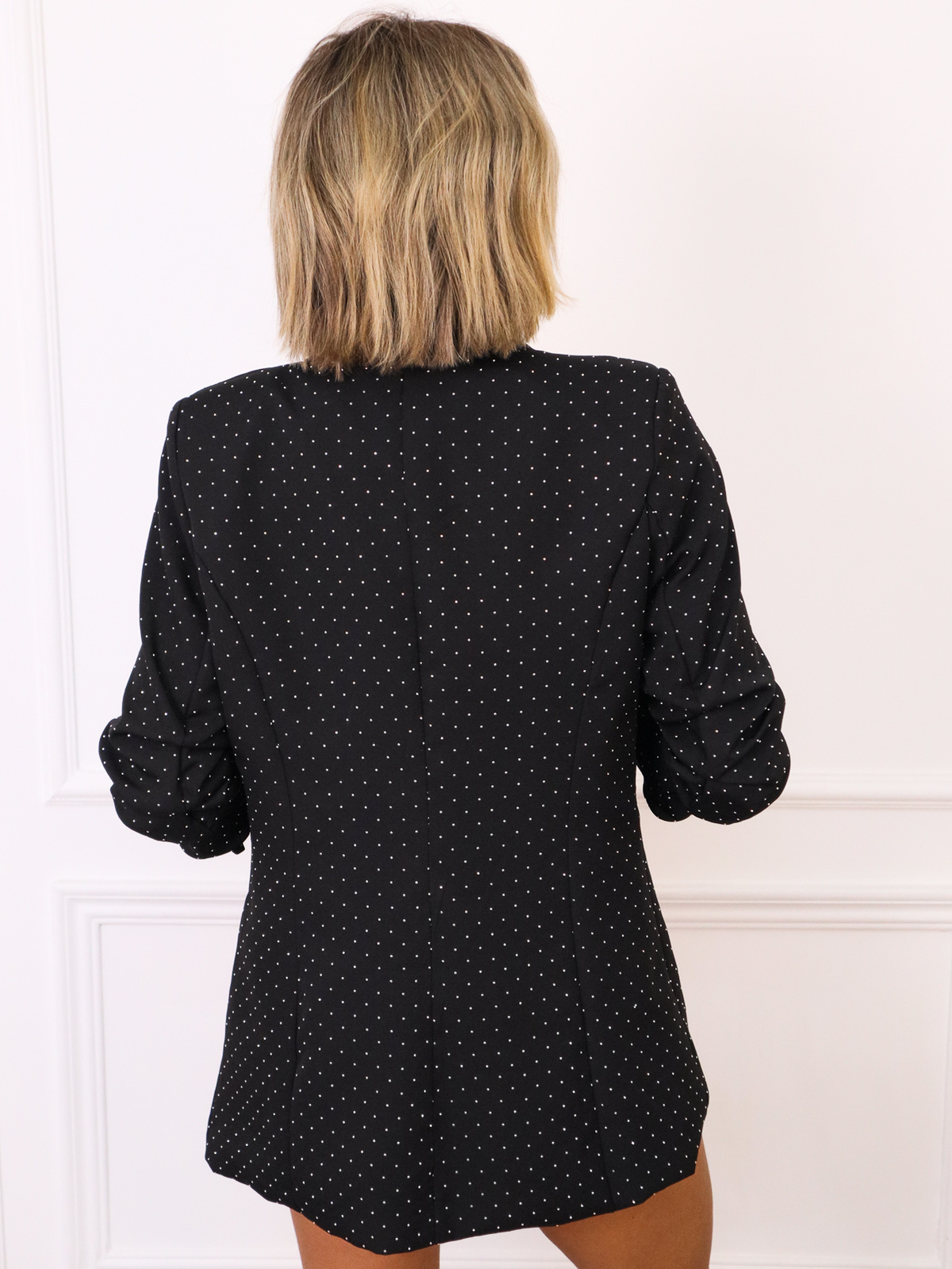 Marynarka onesize zdobiona cyrkoniami. Rękaw 3/4 z marszczeniem.