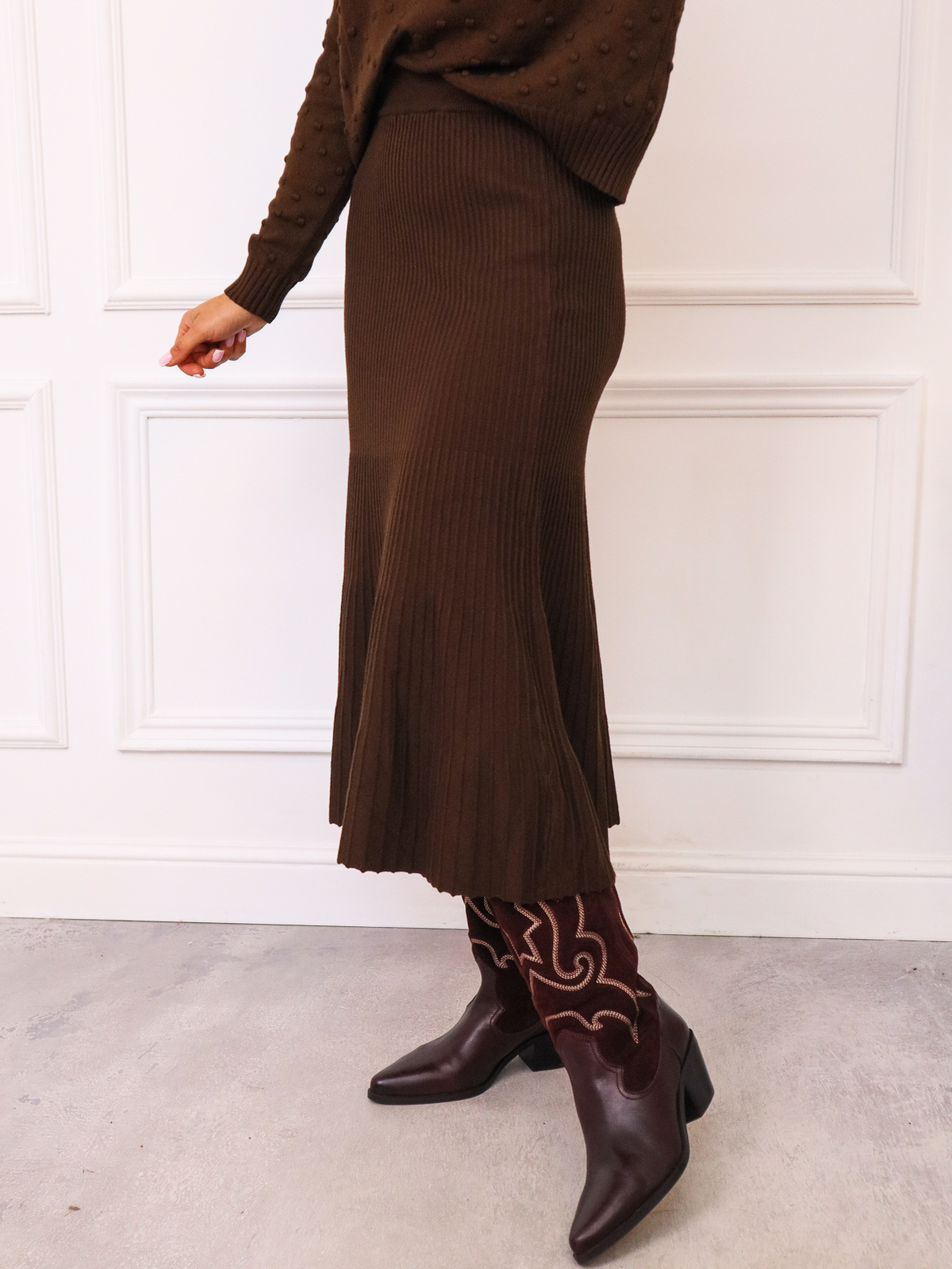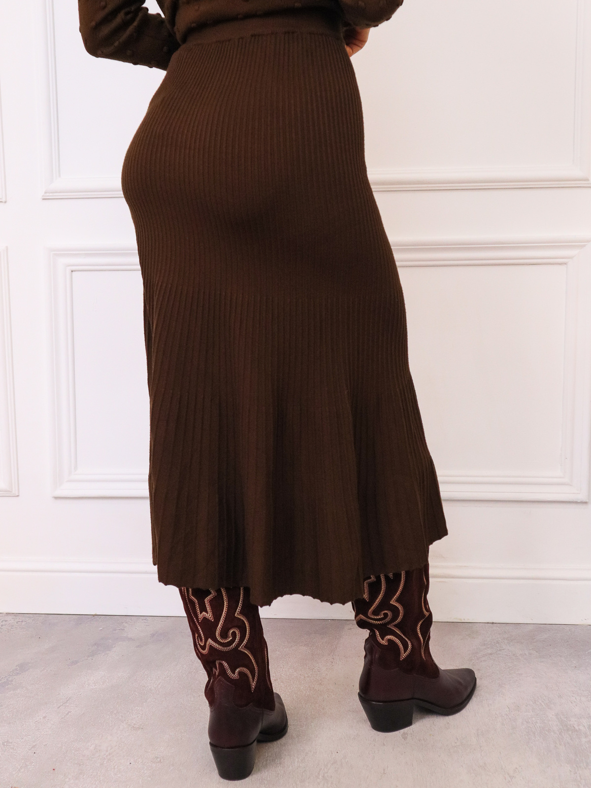 SPÓDNICA PRĄŻKOWANA Z DZIANINY- CZEKOLADOWA