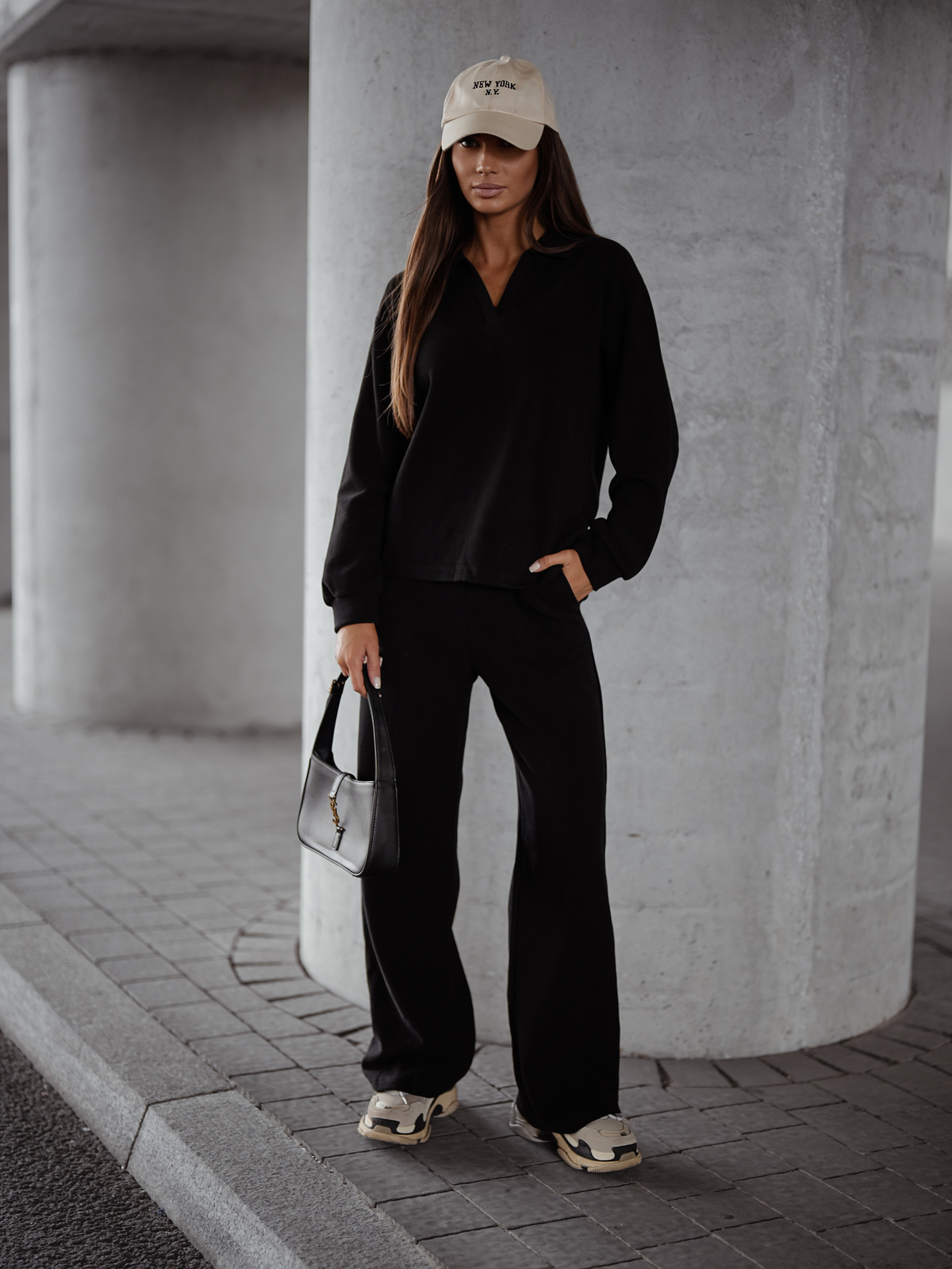 KOMPLET DZIANINOWY SWETERKOWA BLUZA+ SPODNIE- CZARNY