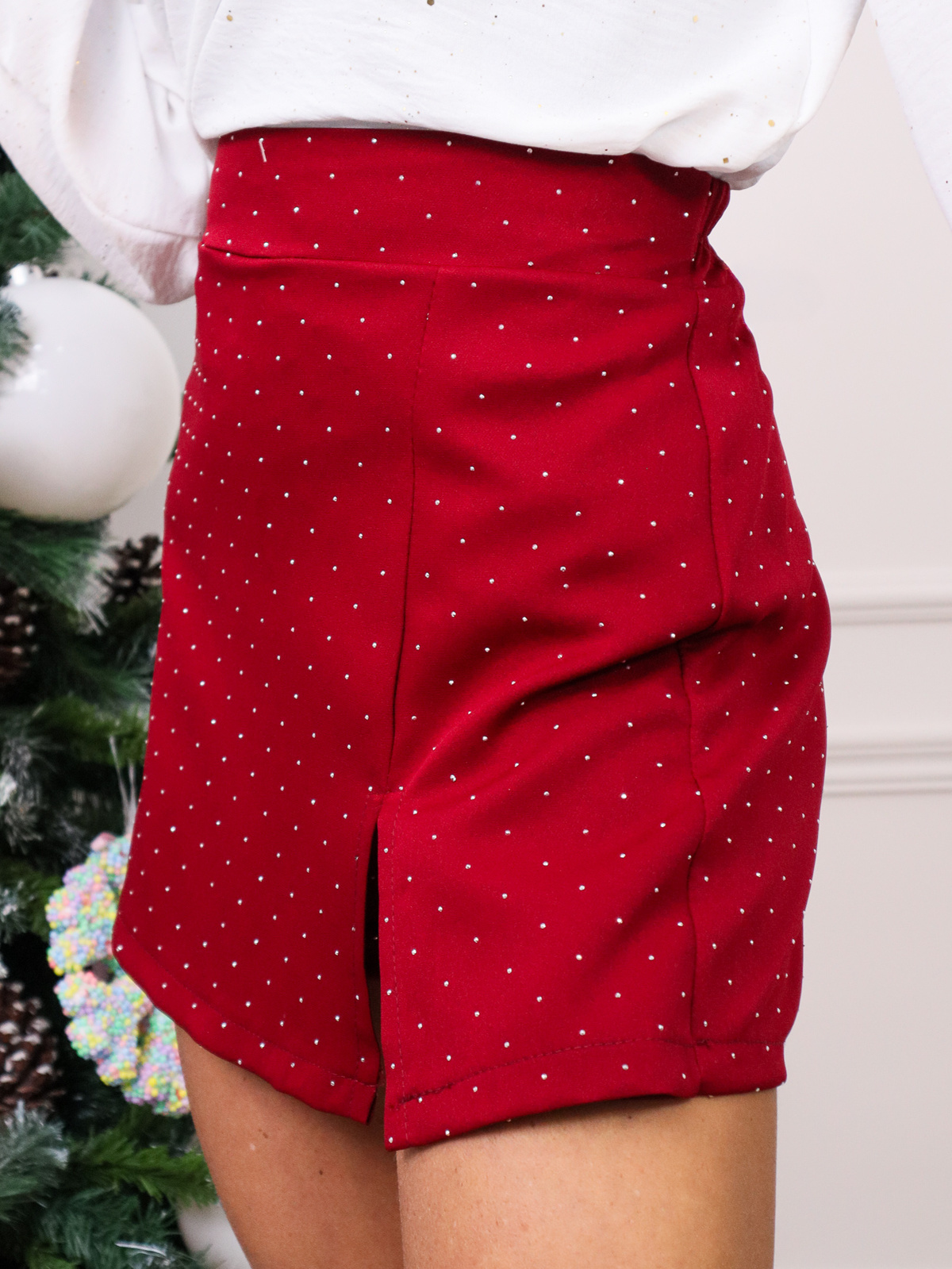 SPÓDNICO-SPODENKI ZDOBIONE CYRKONIAMI- BORDOWE