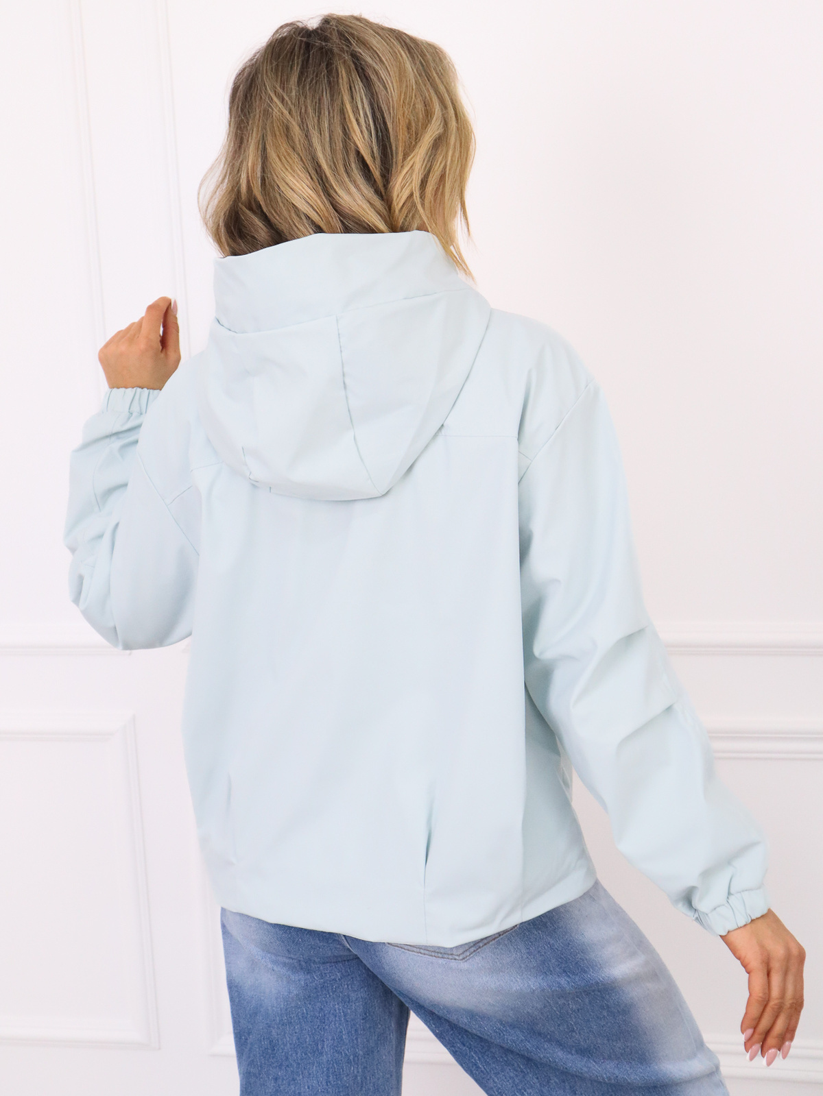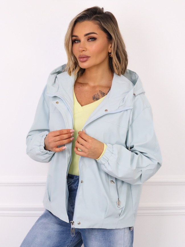 Kurtka przejściowa, wykonana z nowoczesnej, gładkiej i wytrzymałej tkaniny. Posiada kieszenie zapinane na zamek. Rękawy zakończone ściągaczem.
