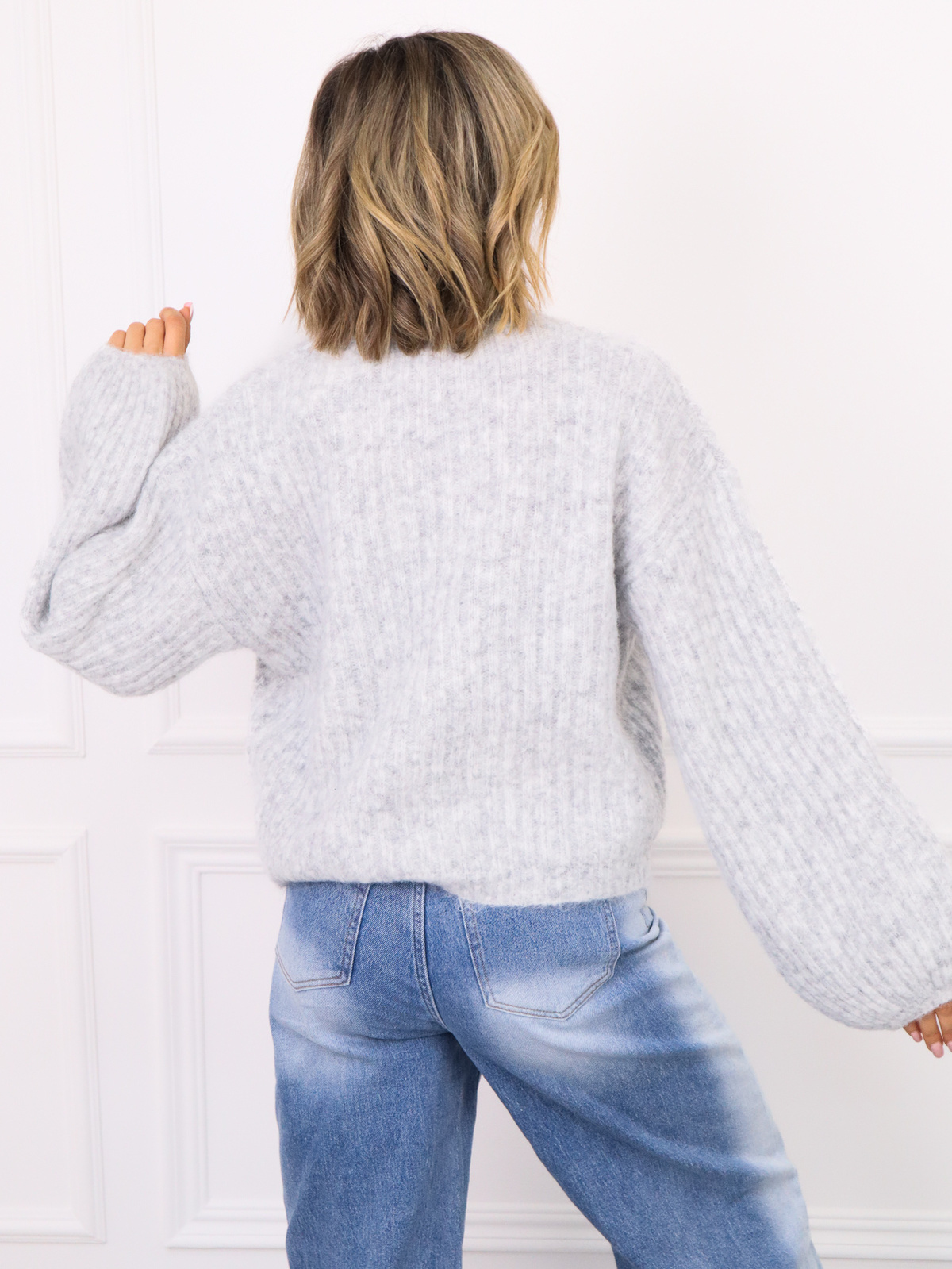 Miękki sweterek wykonany z wysokiej jakości materiału z domieszką wełny. To model o skróconym fasonie z zaokrąglonym dekoltem. Wyjątkowości nadają mu rękawy, które rozszerzają się ku dołowi.