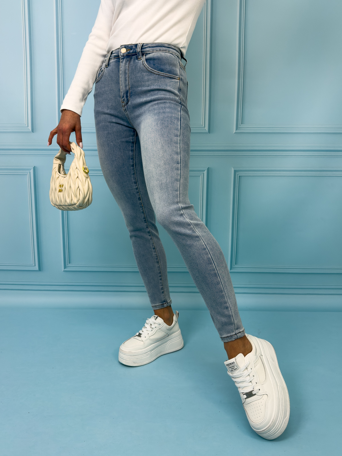 Spodnie jeansowe skinny z wysokim stanem. Miękki i elastyczny materiał
