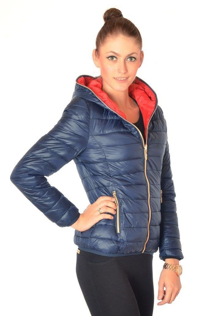 DWUSTRONNA KURTKA PIKOWANA JASNO GRANATOWA - CZERWONA