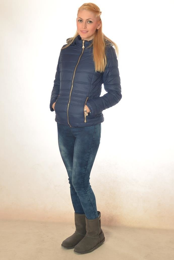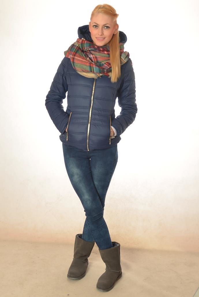 GRANATOWA, PIKOWANA KURTKA ZIMOWO-JESIENNA