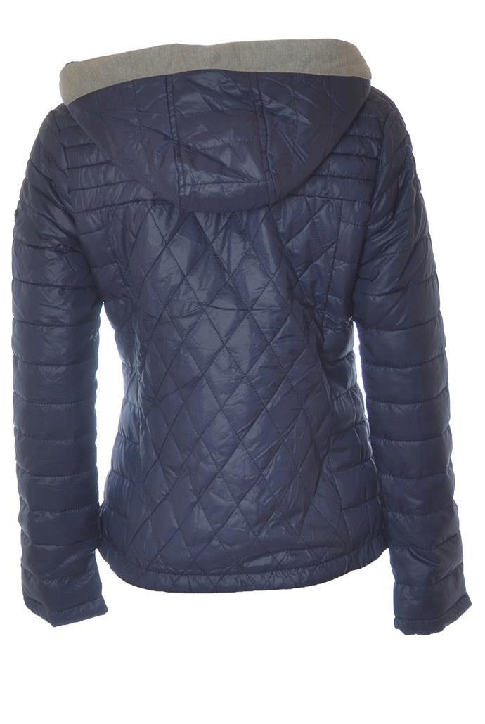 GRANATOWA KURTKA ORTALIONOWA PIKOWANA, ZAPINANA NA ZAMEK, KAPTUR ZE ŚCIĄGACZEM, SZARE MATERIAŁOWE WSTAWKI
