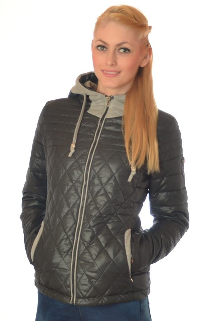 ZAPINANA NA ZAMEK, KAPTUR ZE ŚCIĄGACZEM, SZARE MATERIAŁOWE WSTAWKI