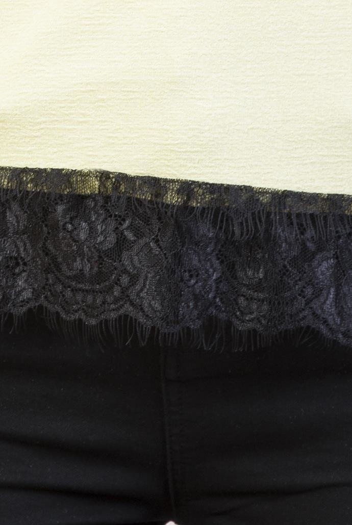 Żółta bluzka z koronką i wisiorkiem
