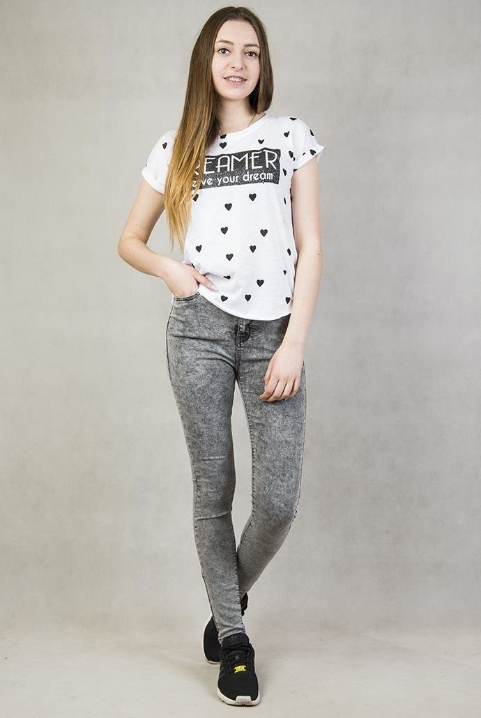 Biała bluzka w czarne serduszka z napisem "Dreamer deserve your dream"