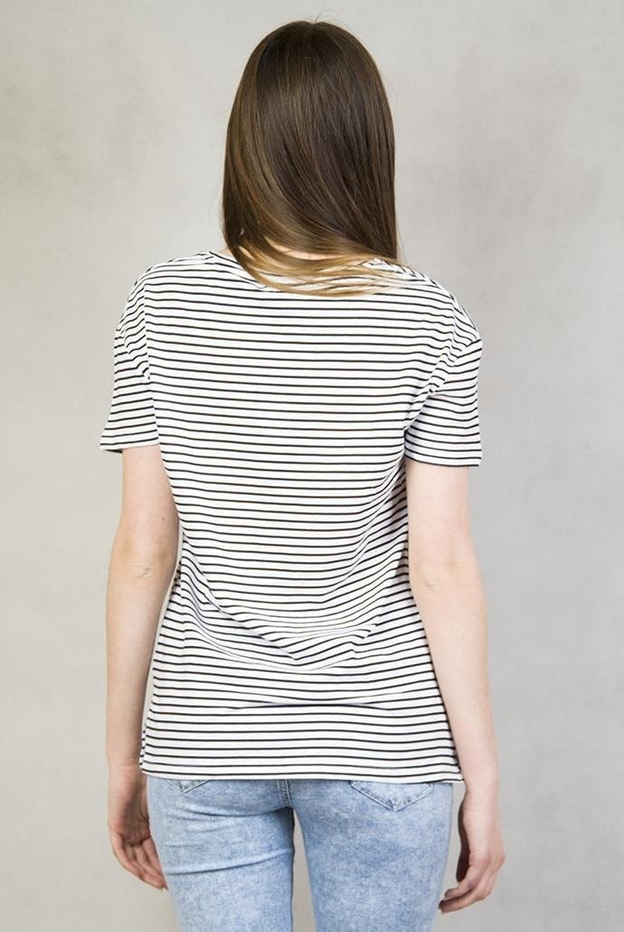 Bluzka w paski, z krótkim rękawem oraz sztampą.