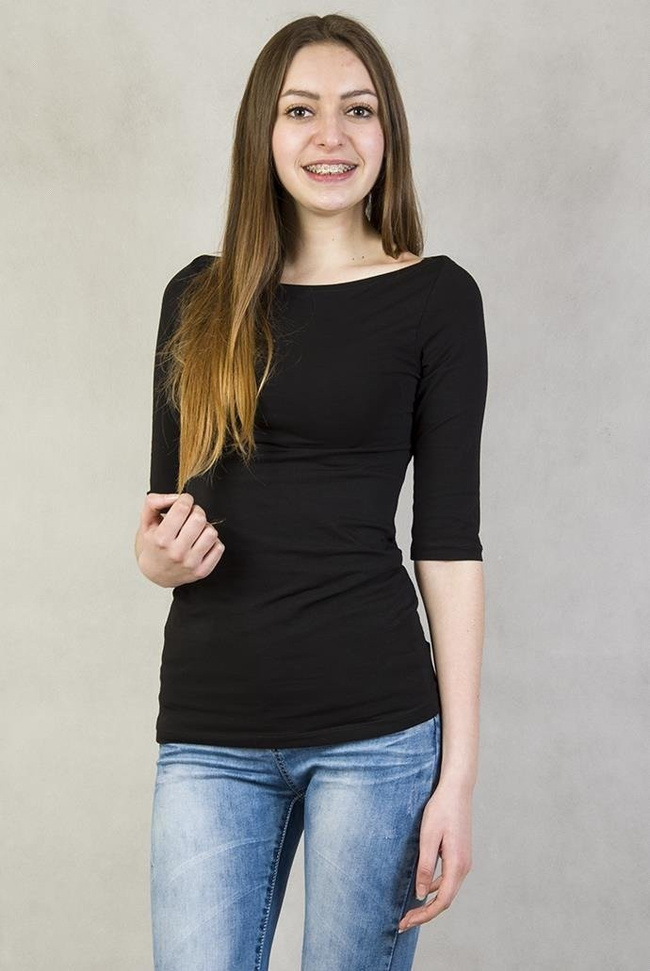 Czarna bluzka z rękawem 3/4 i dekoltem w "łódkę"
