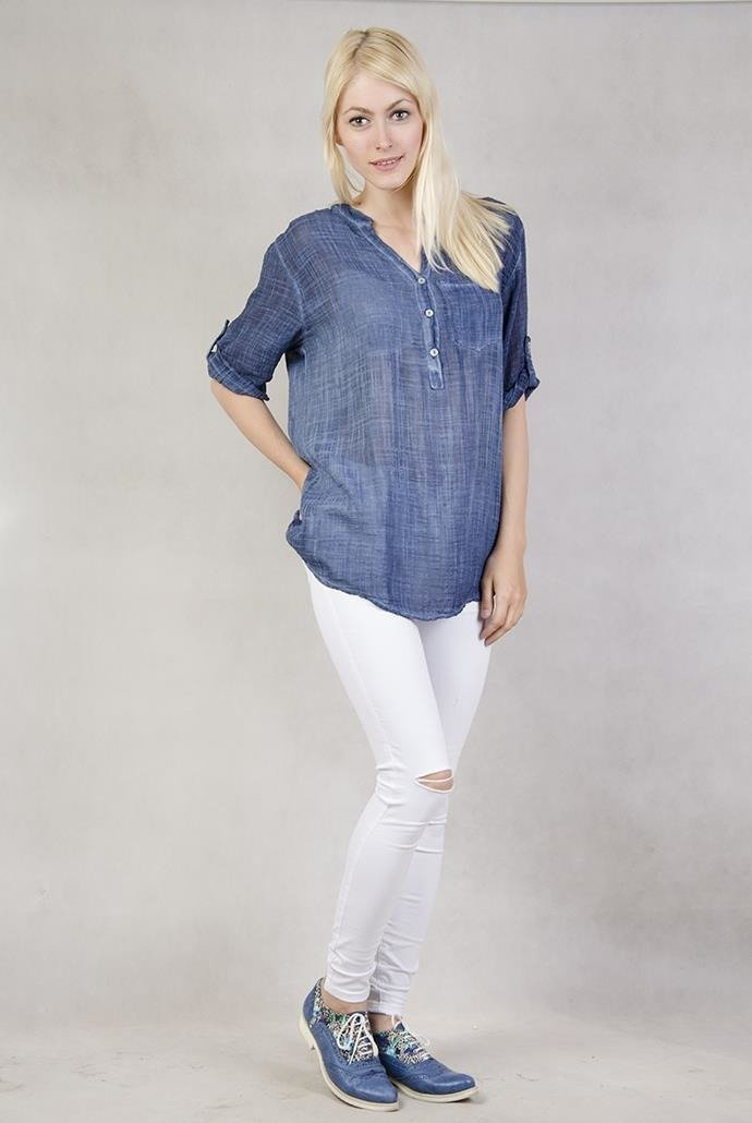 Bluzka granatowa z guziczkami i kieszonką