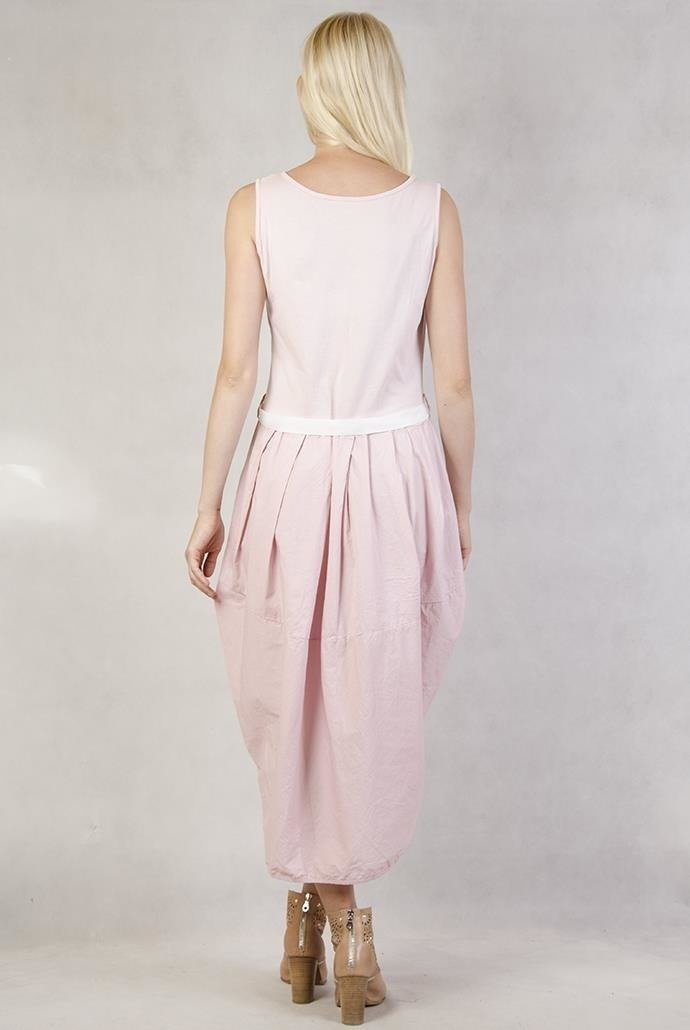 Różowa sukienka wiązana w pasie z przedłużanym tyłem