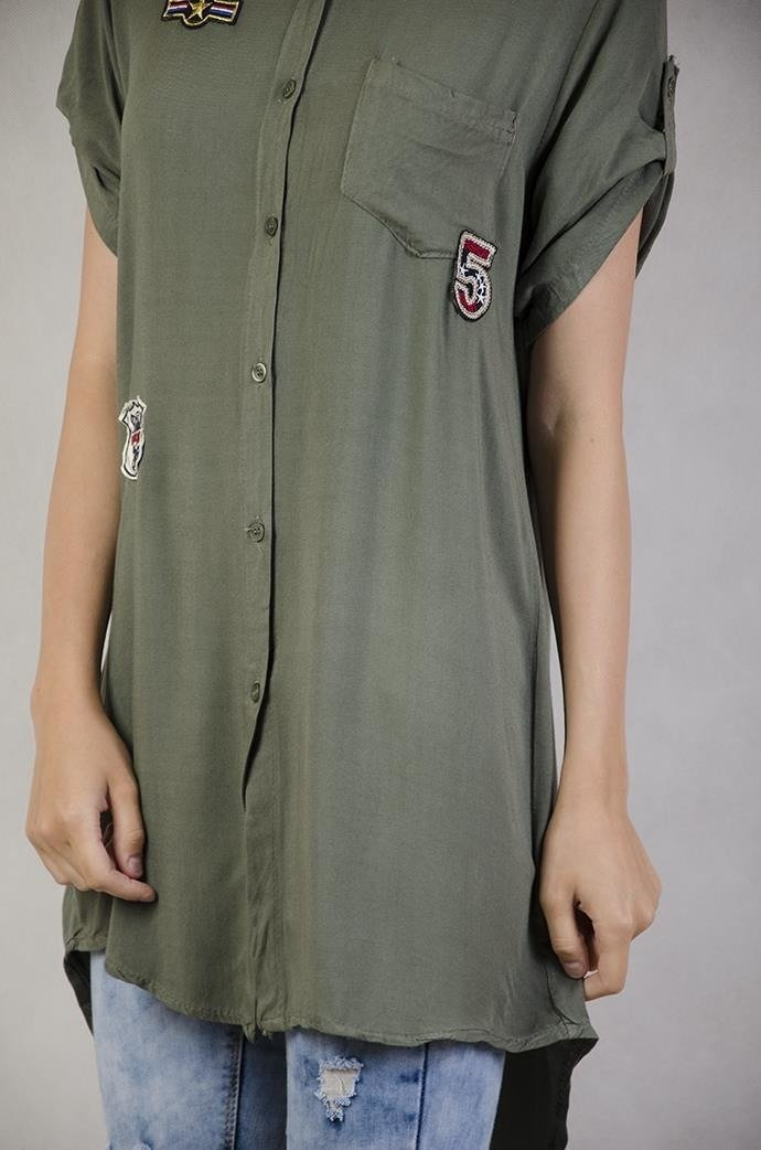 Koszula khaki z naszywkami i przedłużanym tyłem