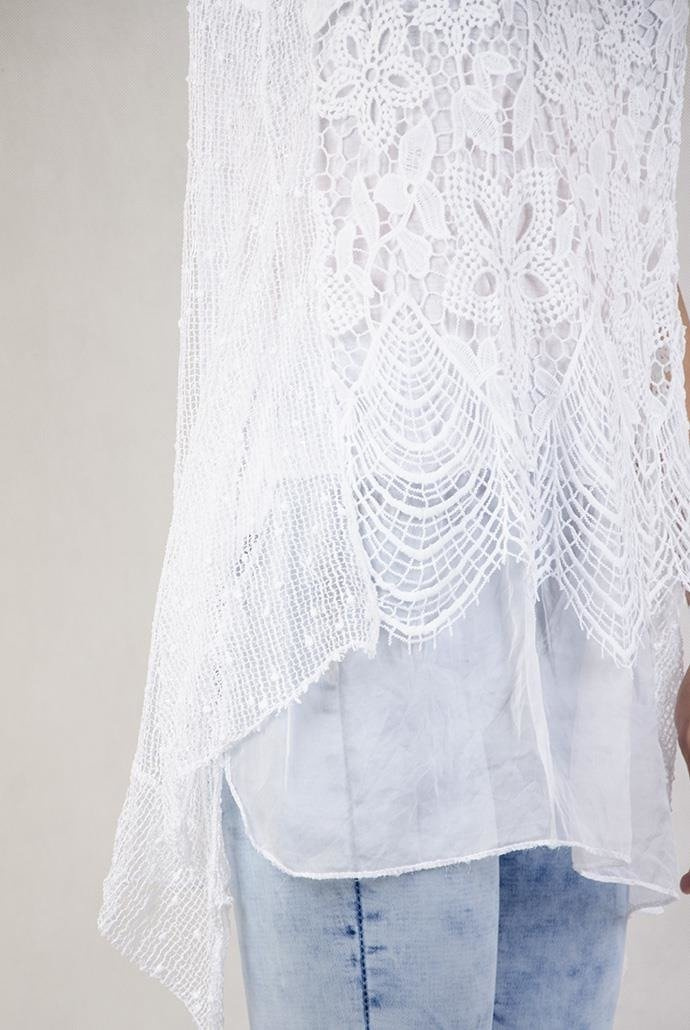 Ażurowa bluzka w kwiaty z cekinami na plecach