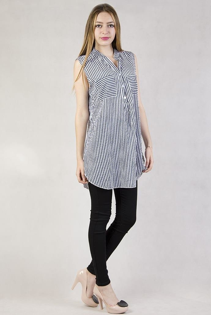 Koszula w biało-granatowe paski na ramiączka