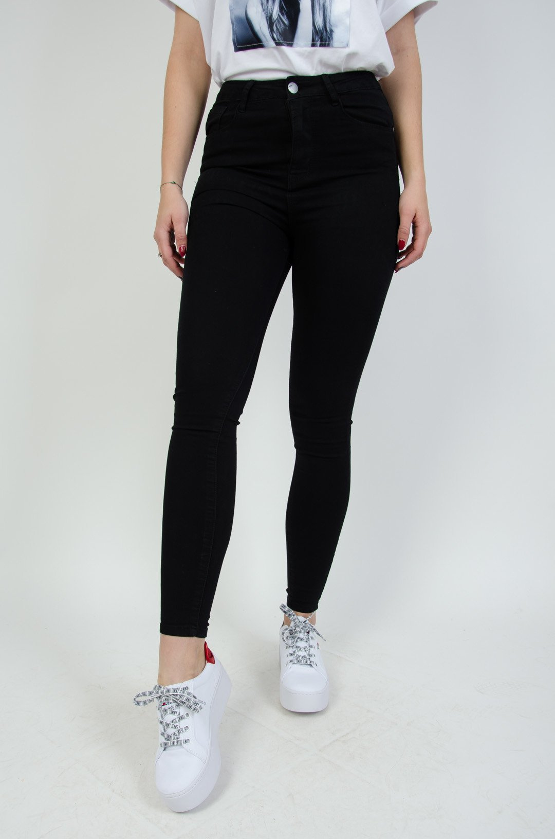 Klasyczne czarne spodnie rurki z wysokim stanem.