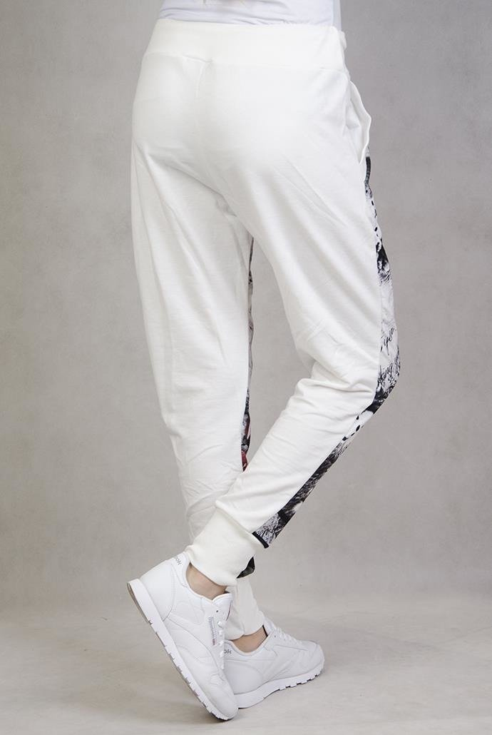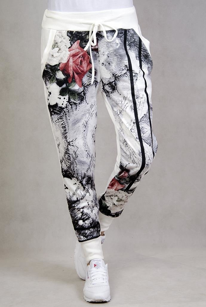 Dresowe spodnie z motywem kwiatowym z przodu, tył biały.