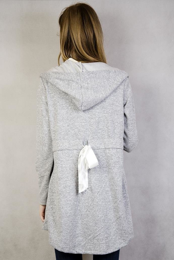 Jasnoszara melanżowa narzuta zapinana na guziki z kapturem