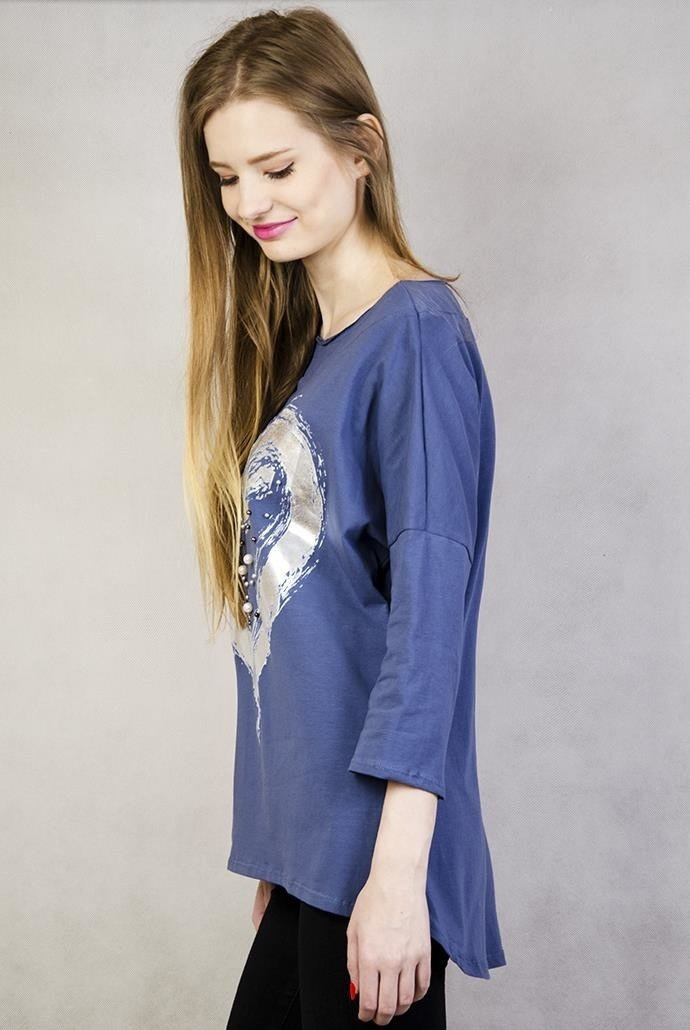 Asymetryczna bluzka z srebrnym sercem i perełkami, niebieska